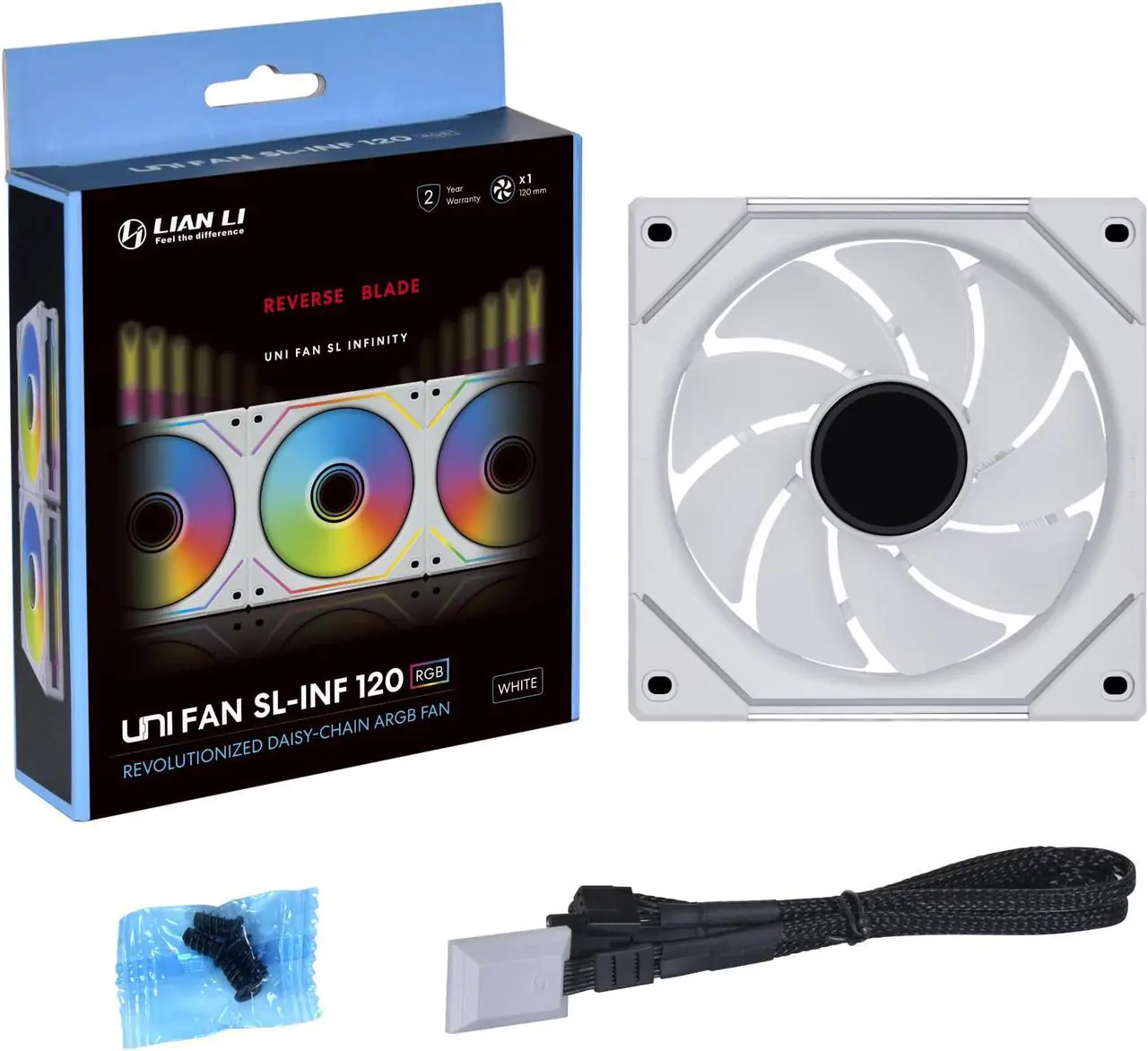 Lian Li UNI FAN SL-INF 120 Reverse Blade ARGB Fan, 120mm PWM, Infinity Mirror Design, Daisy-Chain, Magnetic Fluid Bearing, Custom Lighting, Quiet High-Flow, White
