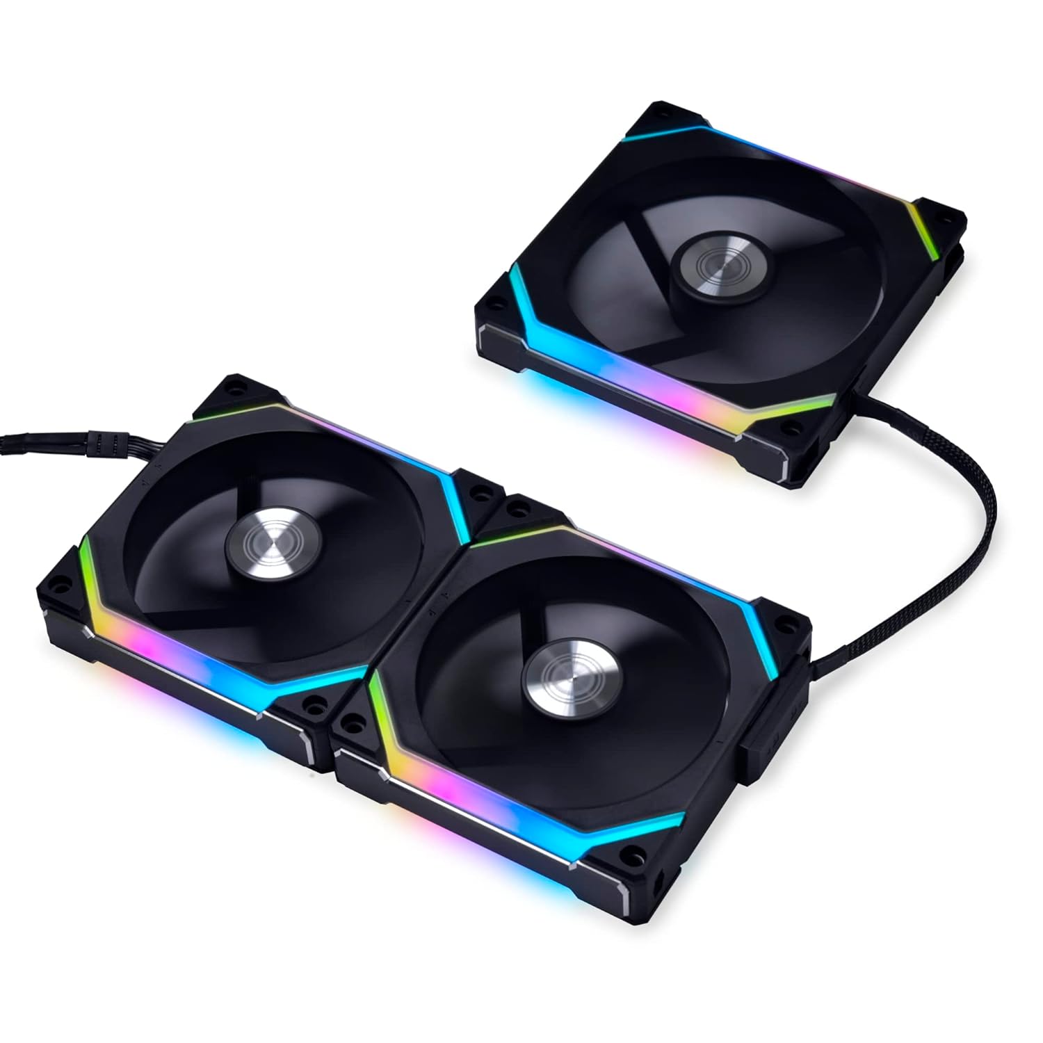 Lian Li UNI Fan SL120 V2 RGB Black 120mm Fan Pack of Three with Controller – Cluster Connections – 18 cm Extension Cable – 28mm Thick Frame – Black UF-SL120V2-3B