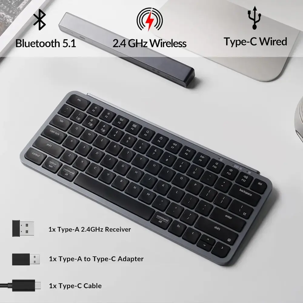 - Cross-Platform Compatibility: Designed with a Mac layout while fully compatible with Windows. Retain multimedia and function key functionalities, with easy keymap configuration for both operating systems.