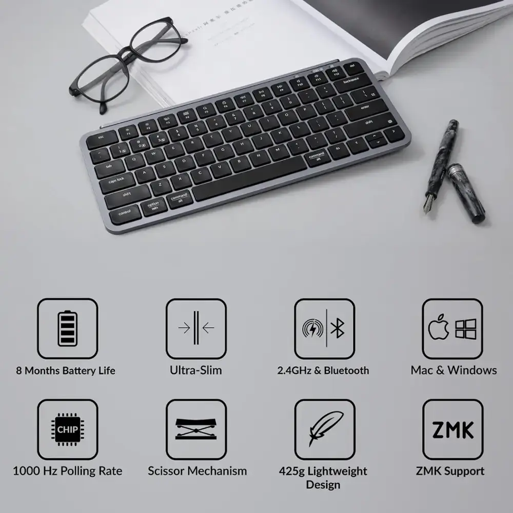 - Ultra-Portable Design: The B1 Pro is a lightweight, ultra-portable wireless keyboard that supports 2.4GHz, Bluetooth, and wired connections, ensuring versatility in your work environment.