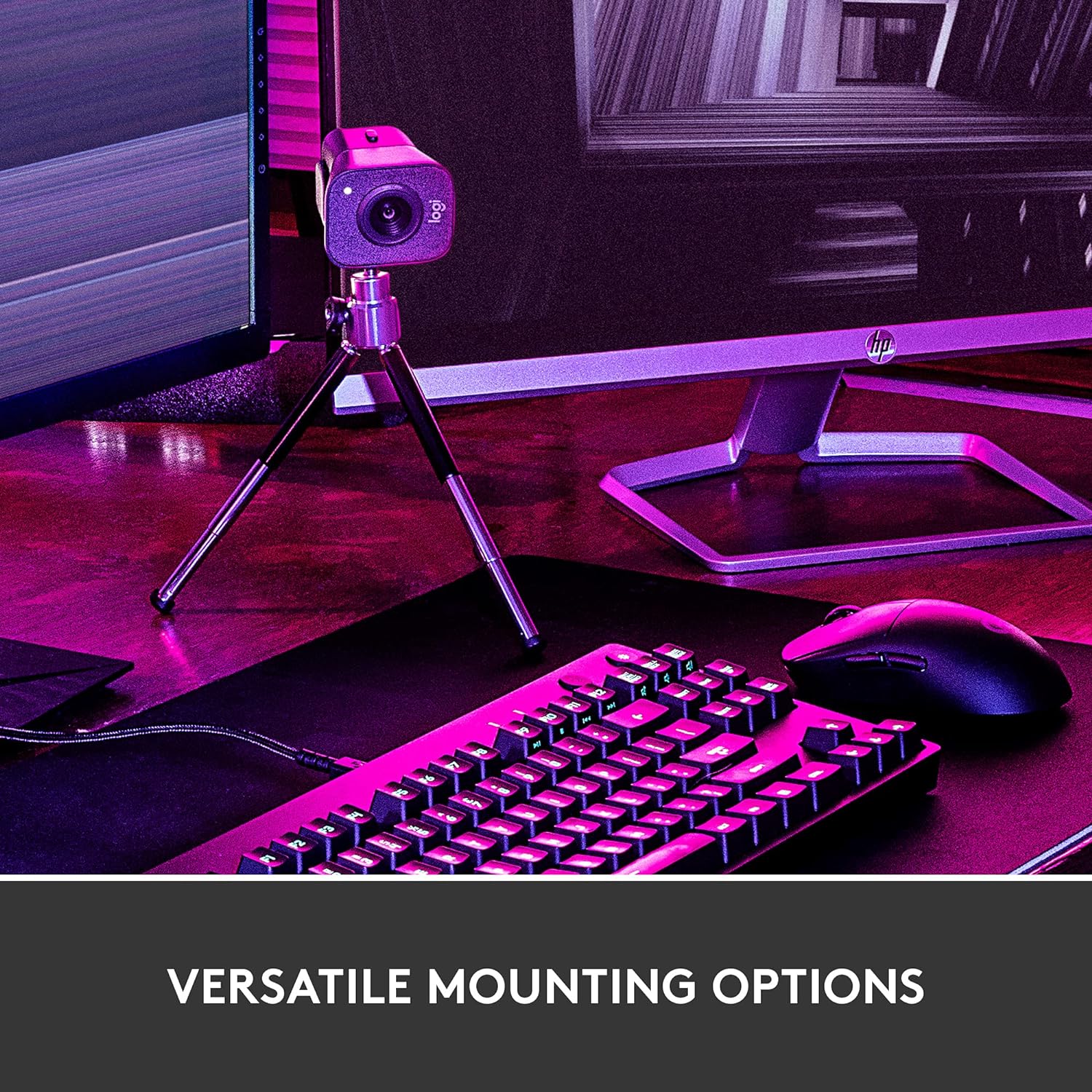 - Versatile Mounting Options — Achieve the perfect framing with landscape or portrait modes and mount on your monitor or directly on a standard tripod.