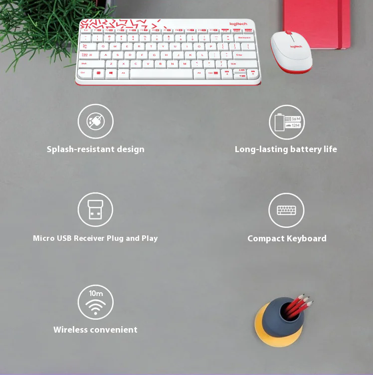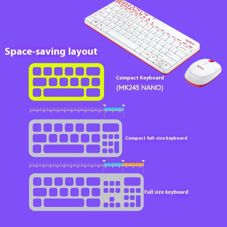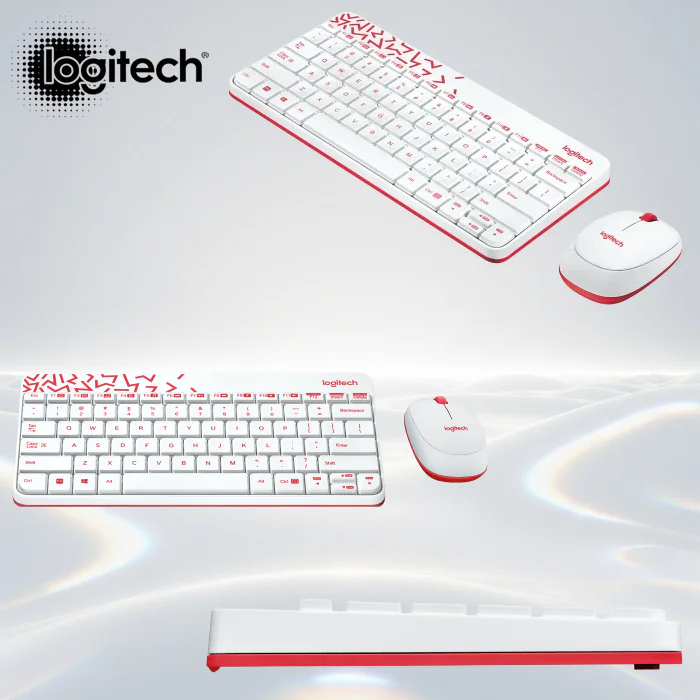 Logitech MK240 Nano Wireless Keyboard And Mouse Combo – Mini Space-Saving Design, Spill-Resistant Keys, Ambidextrous Optical Mouse, 36-Month Keyboard Battery, USB Receiver, Supports Windows®/ ChromeOS/ Linux | White & Red