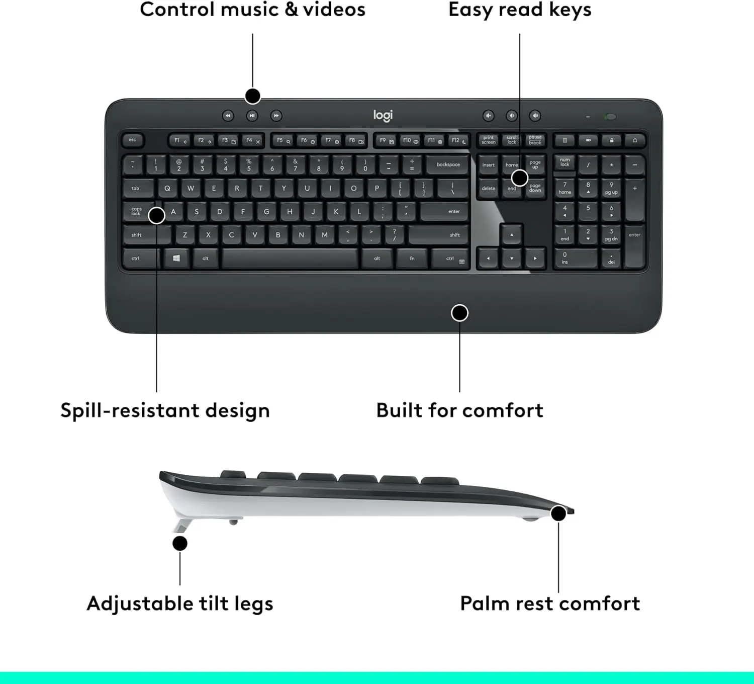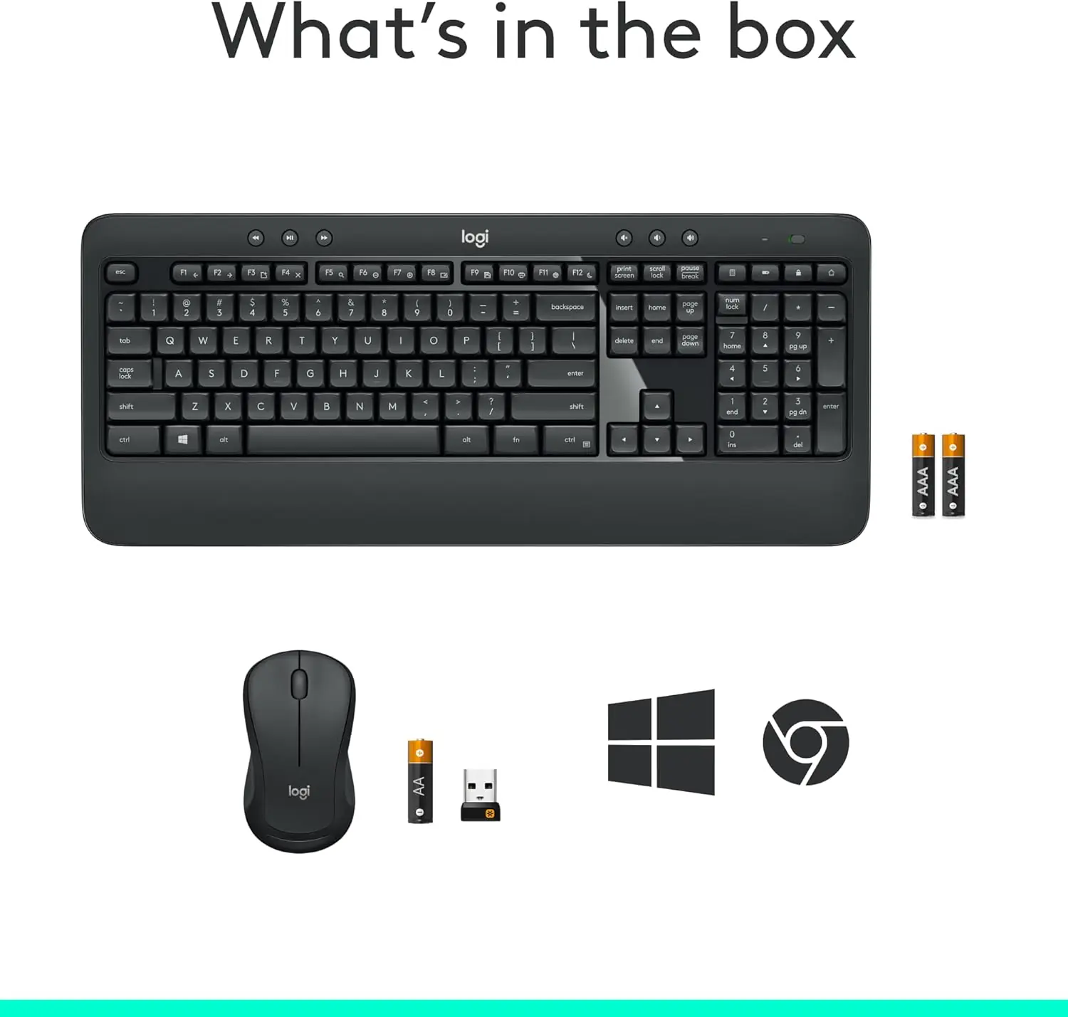 Logitech MK540 Advanced Wireless Keyboard & Mouse Combo, Full-Size Spill-Resistant Keyboard, Customizable Hotkeys, Ambidextrous 1000 DPI Mouse, 36/18 Month Battery Life, Supports Windows® & ChromeOS™ | BLACK