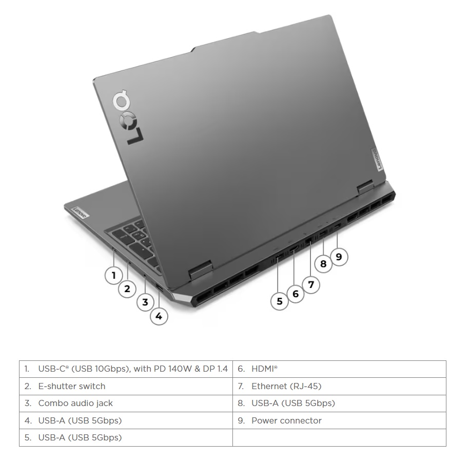 - Connectivity: Wi-Fi 6, Bluetooth 5.2, RJ-45 Ethernet, USB-C® with Lenovo® PD 140W and DisplayPort™ 1.4