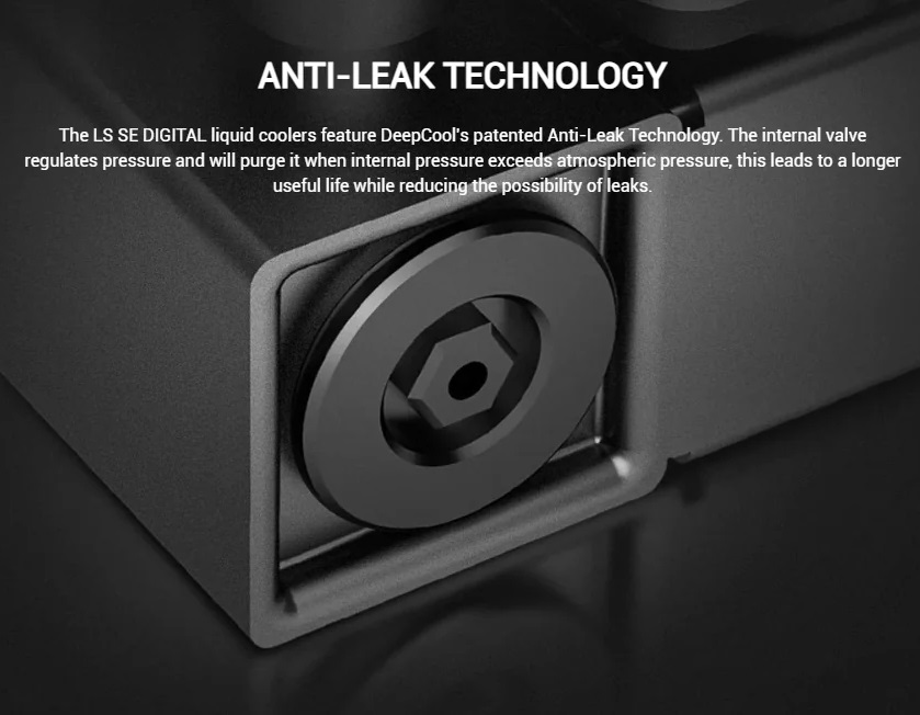 - The LS SE DIGITAL liquid coolers feature DeepCool’s patented Anti-Leak Technology.