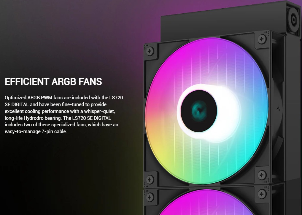 - Optimized ARGB PWM fans are included with the LS720 SE DIGITAL and have been fine-tuned to provide excellent cooling performance with a whisper-quiet, long-life Hydrodro bearing.