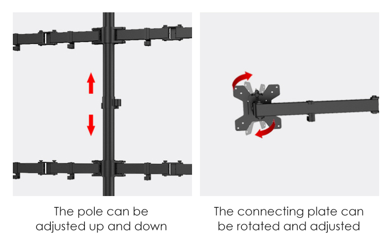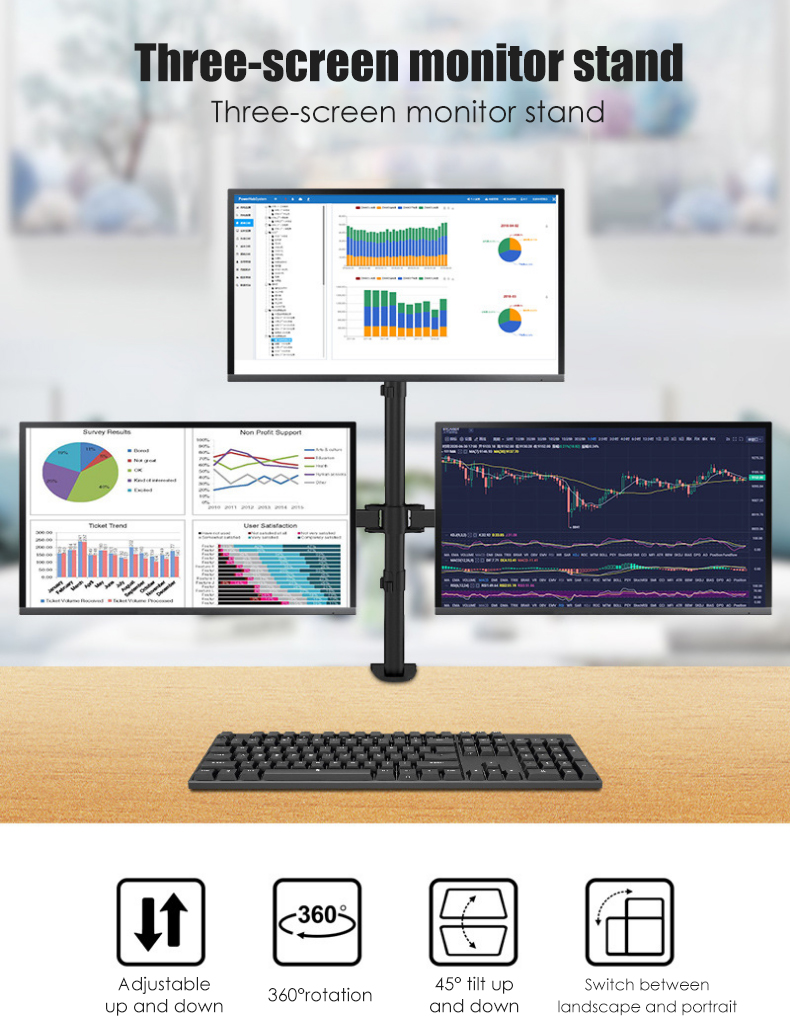 - Three Monitors: Fits most 17”- 27” (2-7KG) for each monitor