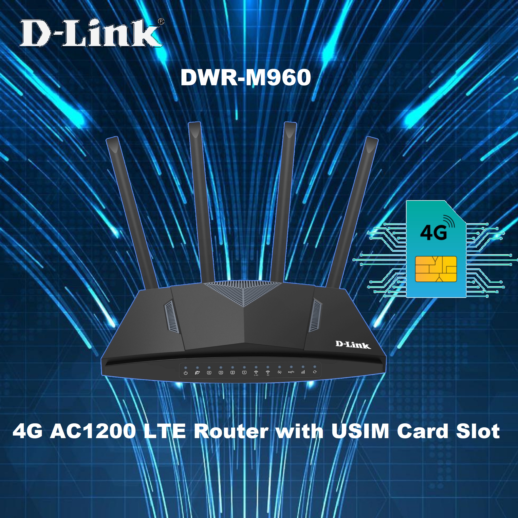 D-LINK DWR-M960 4G AC1200 LTE Router with USIM Card Slot & 4 Antennas – 4x Gigabit LAN ports – 1x Gigabit WAN port – USB 2.0 Port for Wireless file sharing – 150Mbps downlink ; 50Mbps uplink – Dual-active firewalls (NAT/SPI)