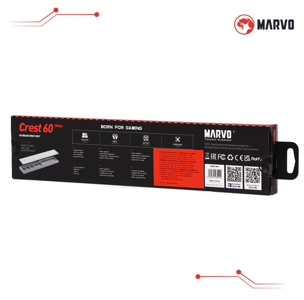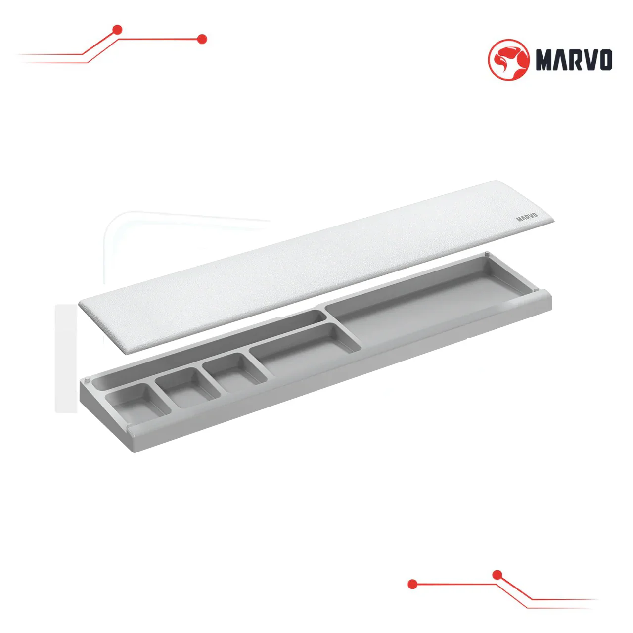 Marvo K002 BK Crest 60 White Ergonomic Keyboard Pad With Wrist Support, Hidden Storage Compartment, Anti-Slip Base & Soft Durable Padding For Comfort & Productivity