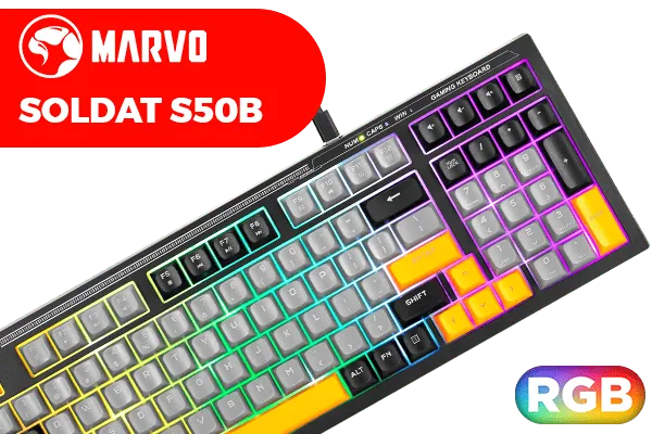 MARVO K638B Soldat S50B Gaming Keyboard | Silent Typing | 98 Keys | 19-Key Anti-Ghosting | Rainbow Backlight | USB Connection | Detachable Type-C Cable | Ergonomic Design