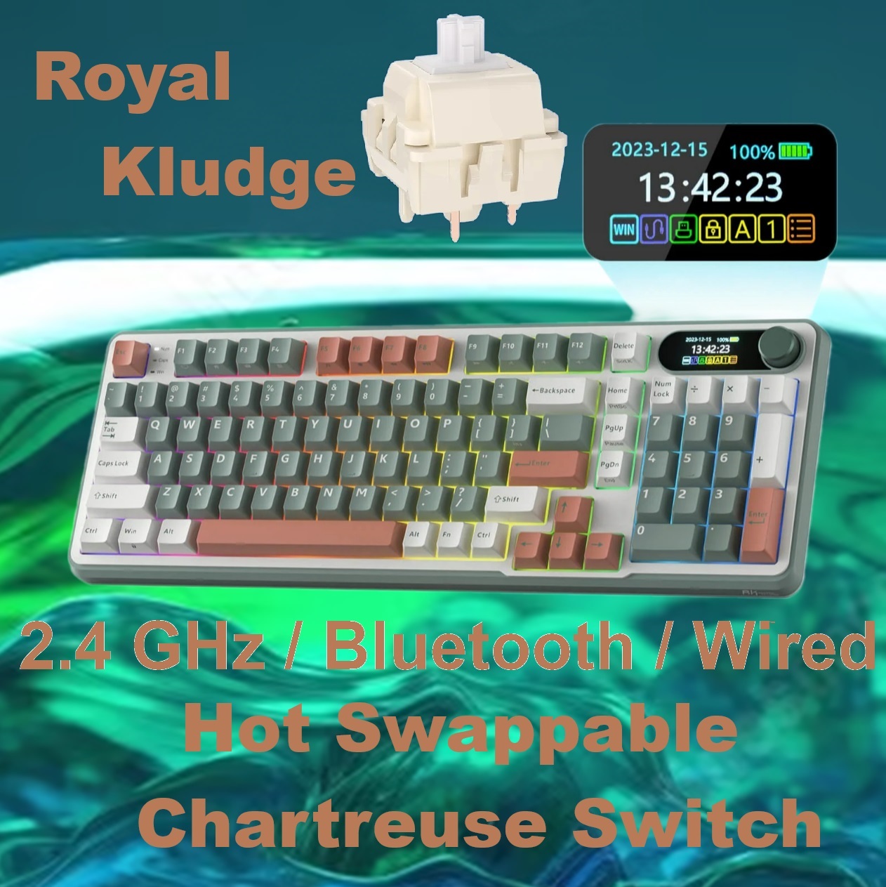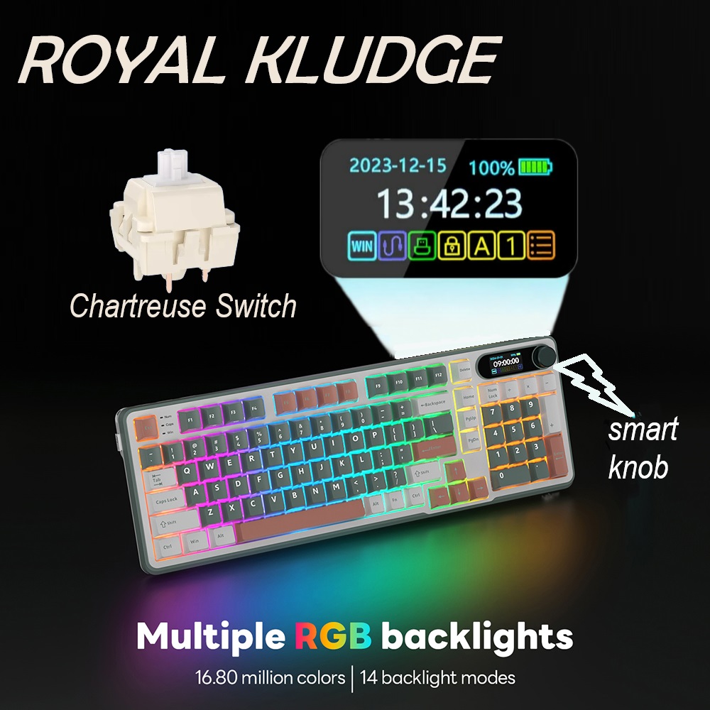 RK ROYAL KLUDGE RKS98 Mechanical Keyboard w/Smart Display & Knob, Top Mount 96% Wireless Mechanical Keyboard BT/2.4G/USB-C, Hot Swappable, Software Support, Massive Battery, 98 Keys Chartreuse Switch . WIN-iOS-MAC-ANDROID