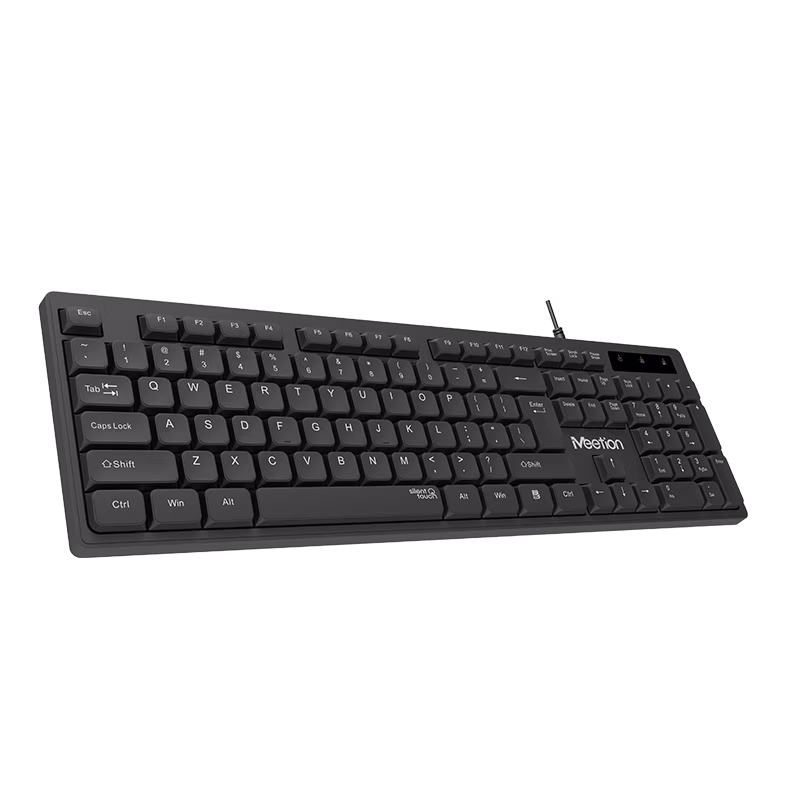 MEETION K300 Standard Wired Keyboard | Silent Typing | Ergonomic Design | USB Plug & Play | 104 Keys | Durable & Comfortable for Office or Home Use | BLACK