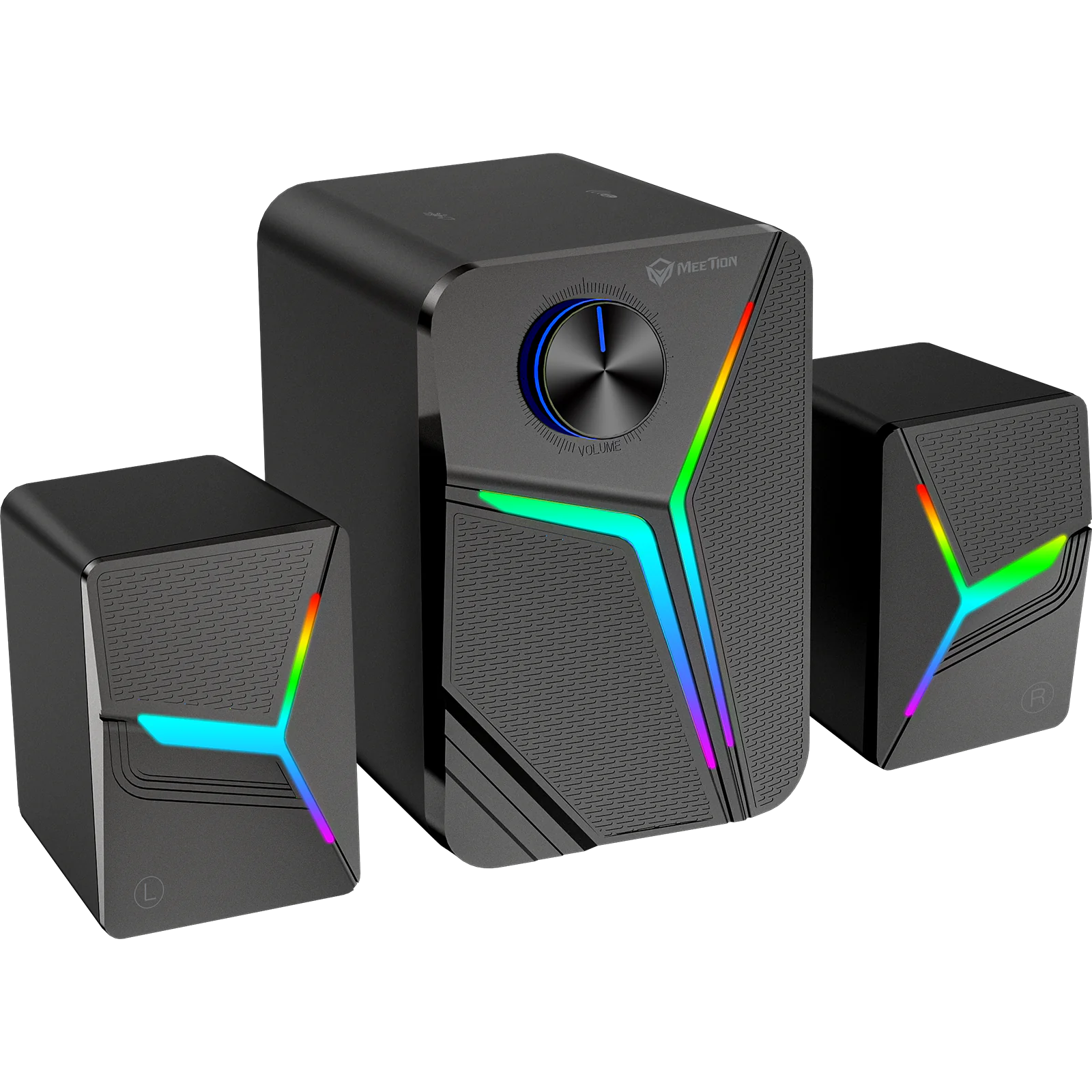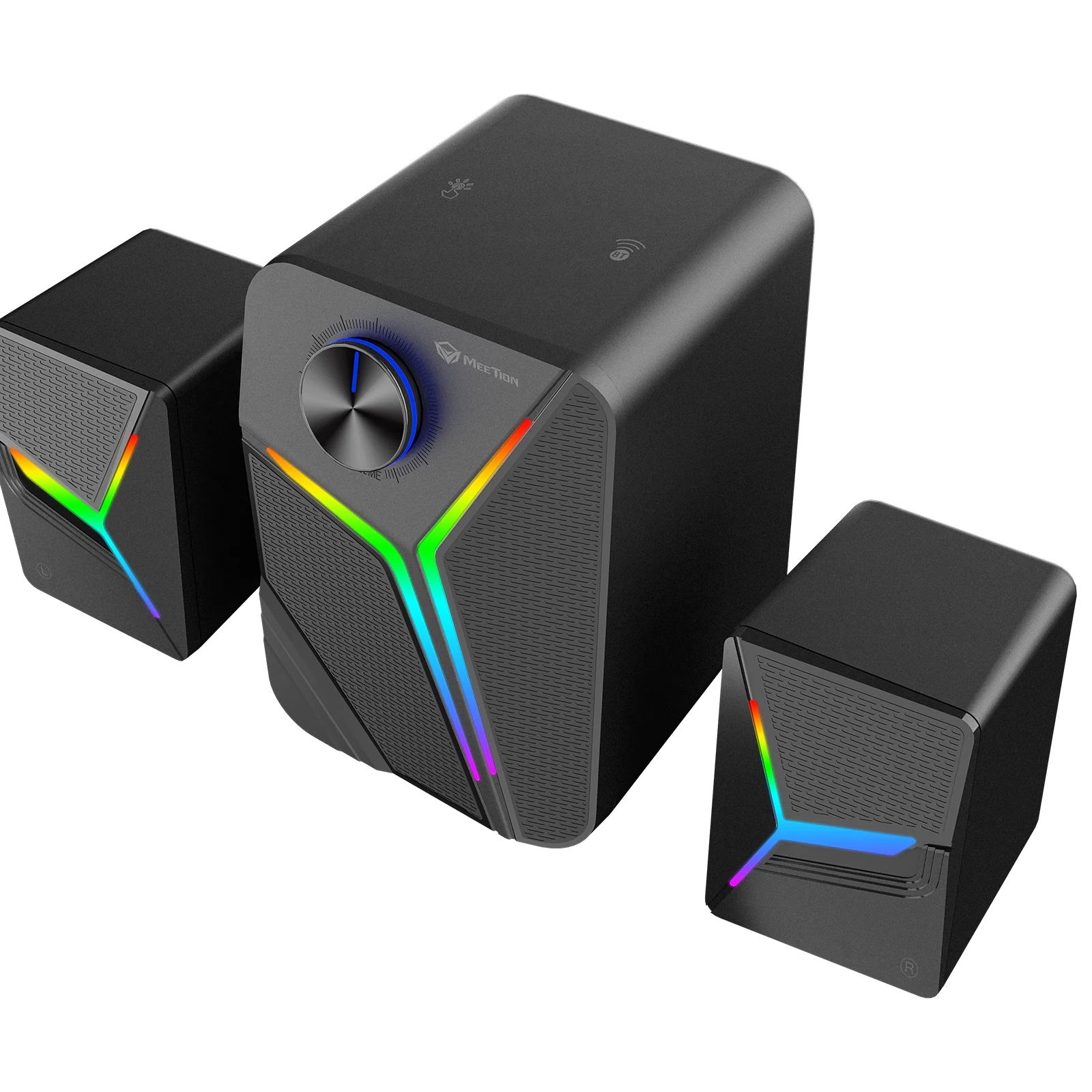 MEETION SP2111 2.1 Gaming Speakers – 15W Output, Bluetooth 5.0, USB, 3.5mm, RGB Pulse Lighting, Subwoofer + Dual Full-Range Drivers for Immersive Sound