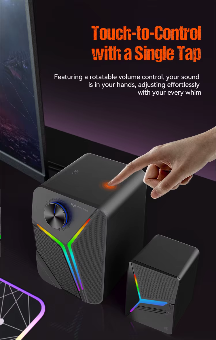 Seamlessly connect via 3.5mm AUX, USB, or Bluetooth for maximum compatibility with desktops, laptops, consoles, and mobile devices. - Touch & Scroll Volume Control