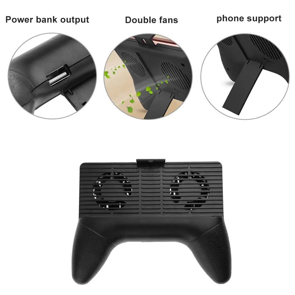Mobile Phone Radiator – Dual-Fan Cooling Stand, 2000mAh Battery, 8H Runtime, USB Charging, 5V Input/Output, Black – Portable Gaming Cooler for Smartphones