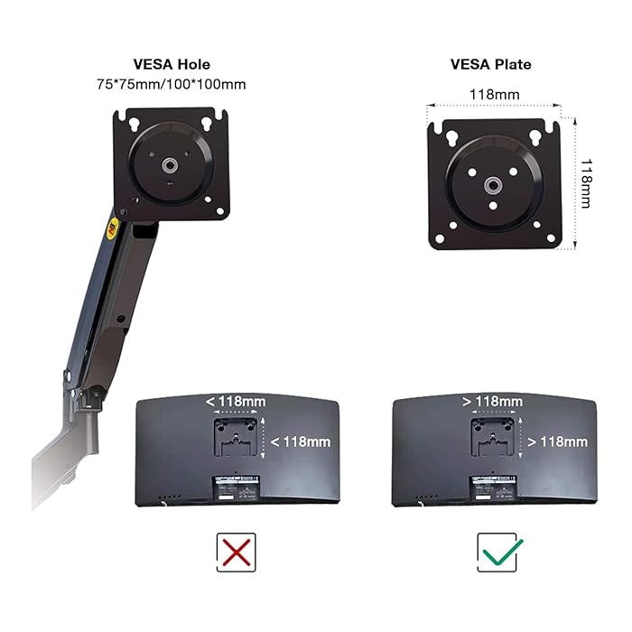 - Fits monitors with VESA mounting holes: 75×75 mm or 100×100 mm.