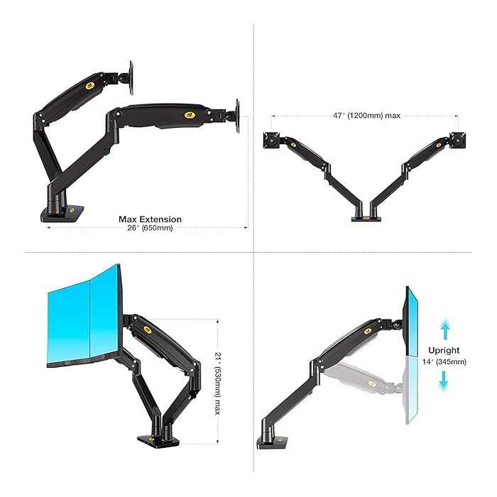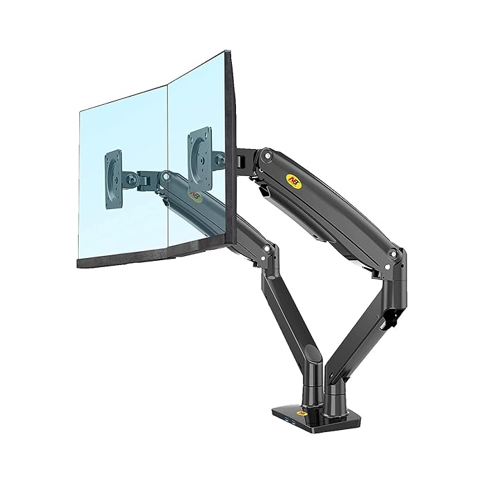 NB North Bayou Dual Monitor Desk Mount Computer Monitor Arm Stand fits 2 Screens from 22″ to 32” up to 13Kg Threshold Each ; 360° rotation, Full Motion ±180° swivel, and tilt angle from +85° to -30° | Black NB-F195-B