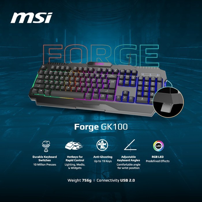MSI FORGE GK100 COMBO Gaming RGB Keyboard & Mouse , 19-Key Anti-Ghosting , Hotkeys for Rapid Control , Membrane Switch , USB 2.0 Interface , 1.5 meters Cable , 6400 DPI Optical Sensor | BLACK
