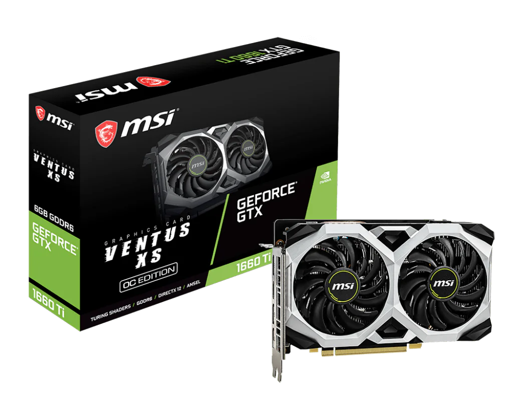 MSI GeForce GTX 1660 Ti VENTUS XS 6G OC – 6GB GDDR6, Dual Fan, Boost Clock 1830 MHz, 3x DisplayPort, 1x HDMI, VR-Ready, 192-Bit | (Used)