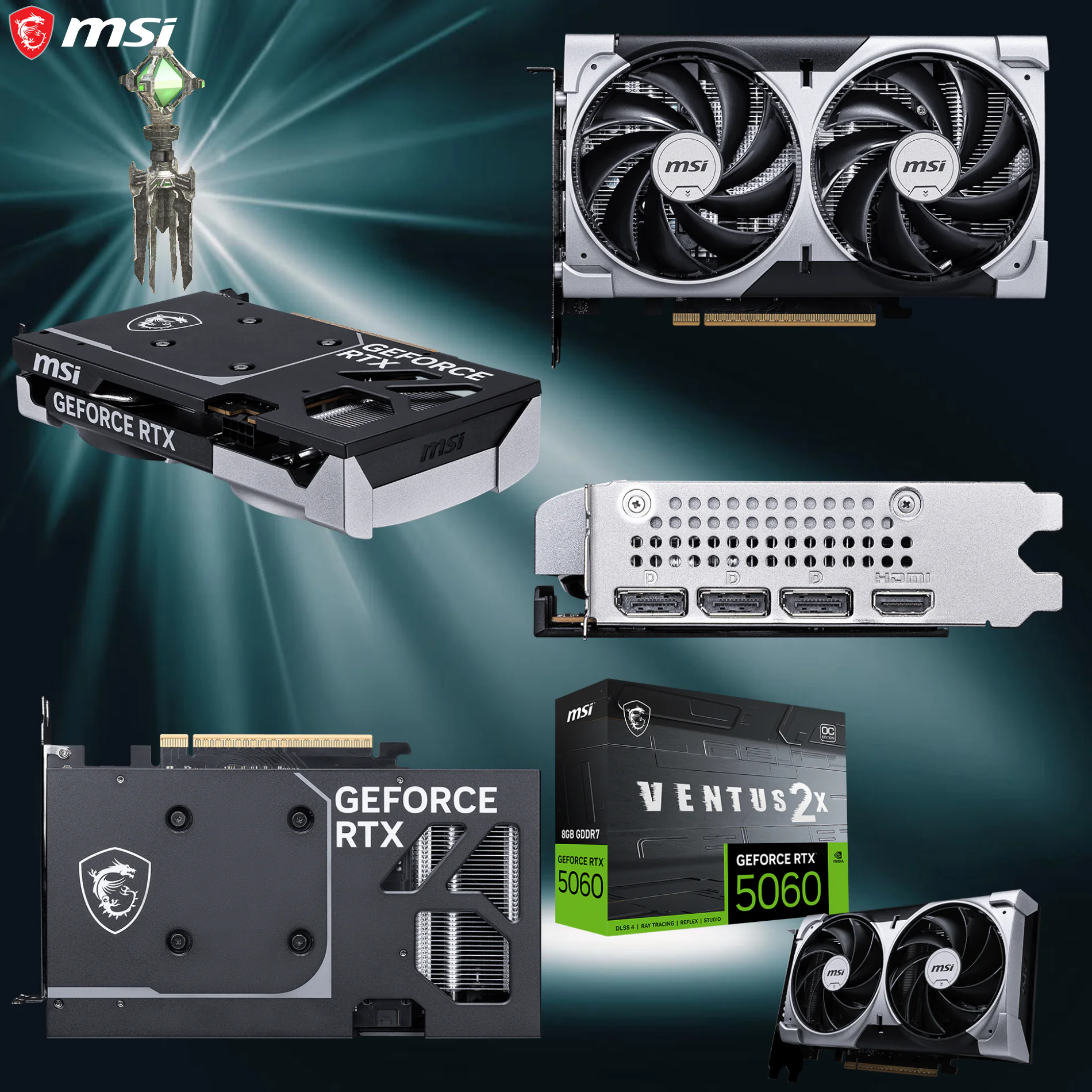 MSI GeForce RTX 5060 8G Ventus 2X OC Graphics Card With DLSS 4, 8GB GDDR7, PCIe 5.0, Dual TORX 5.0 Fans, HDMI 2.1b, DisplayPort 2.1b, 145W TDP, 2535 MHz Boost Clock | 6 MONTH WARRANTY