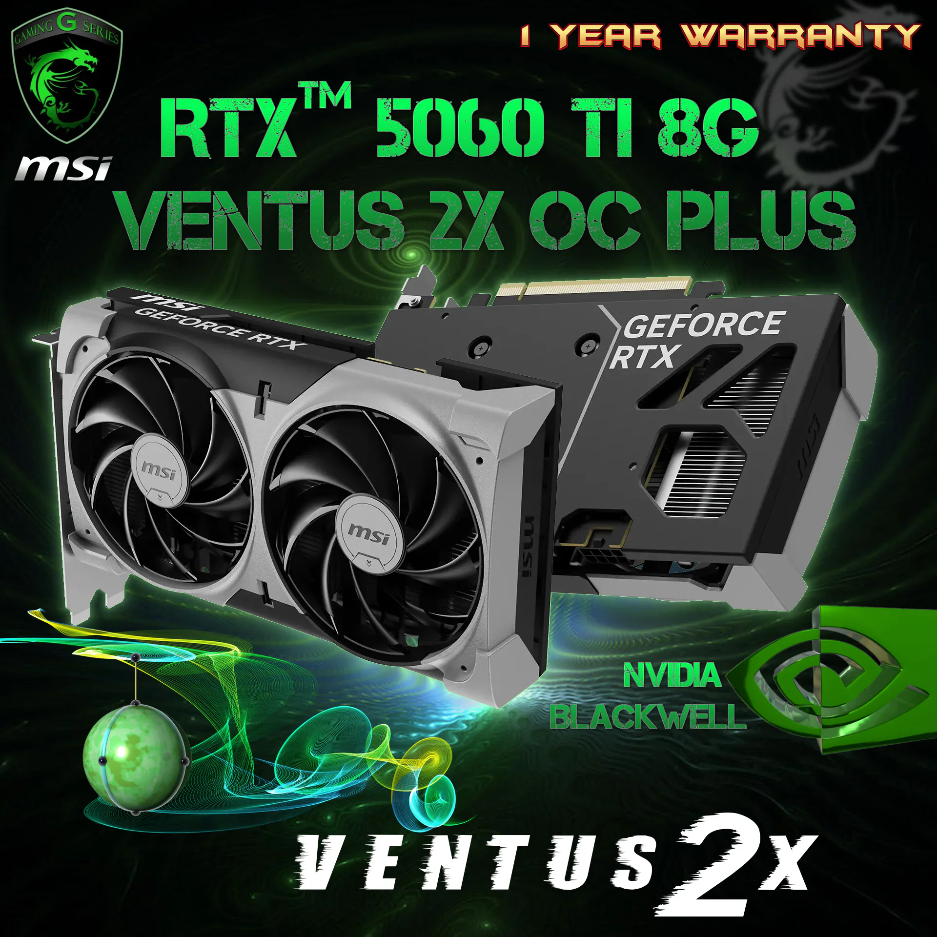 MSI GeForce RTX 5060 Ti 8G Ventus 2X OC Plus With DLSS 4, 8GB GDDR7, PCIe 5.0, Stormforce Dual Fans, HDMI 2.1b, DisplayPort 2.1b, 180W TDP, 2617 MHz Boost Clock | 1 YEAR WARRANTY