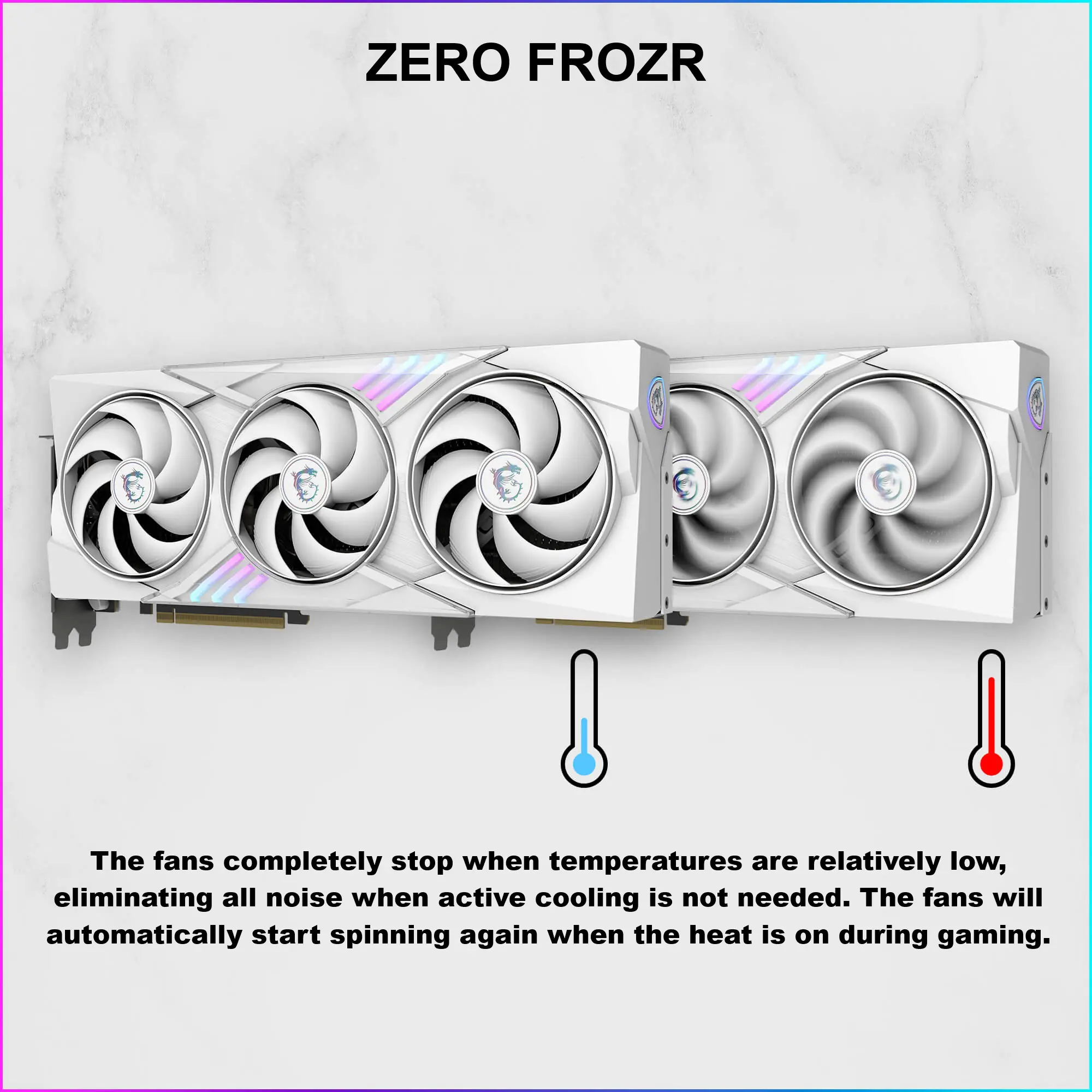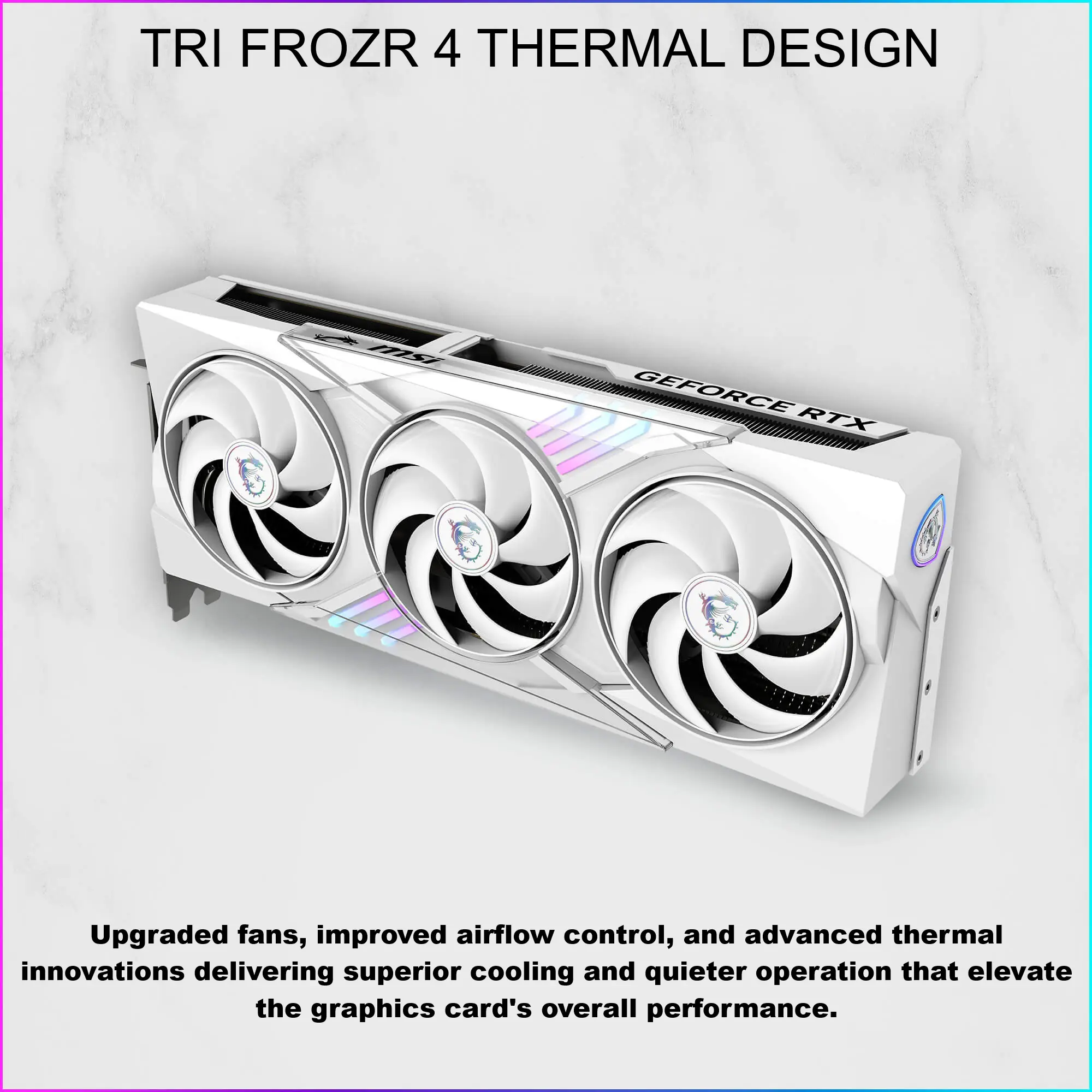 - TRI FROZR 4 Cooling System: Triple fans with stormforce blade tech, wave-curved fins, and airflow control for cool, quiet dominance.