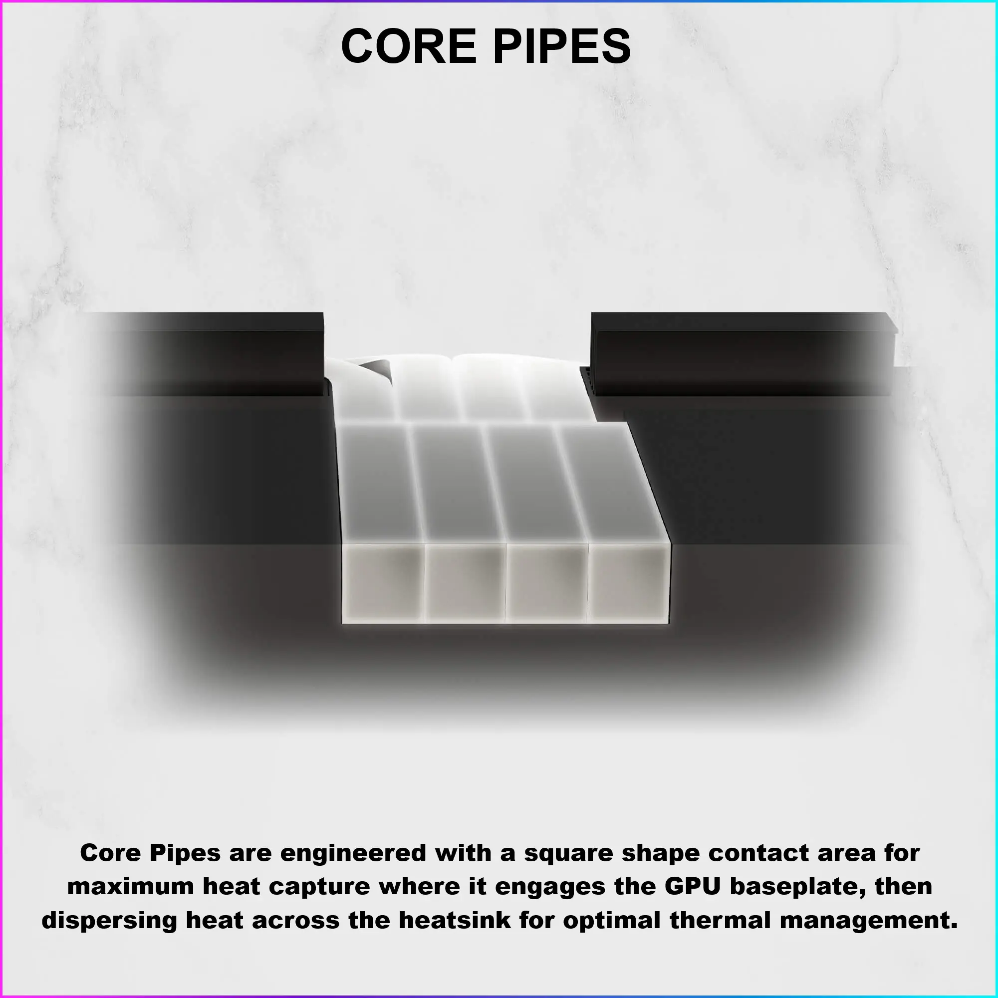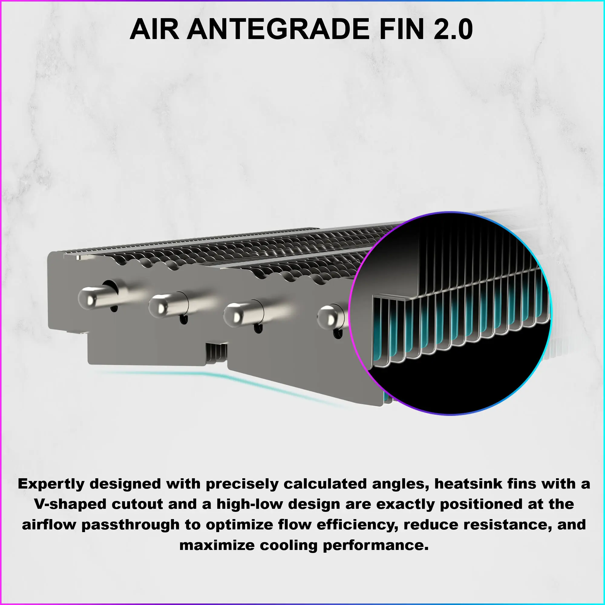 - Core Pipe & Air Antegrade Fin 2.0: Maximized GPU contact, V-cut fins, and turbulence-slaying design keep temps low and stability high.