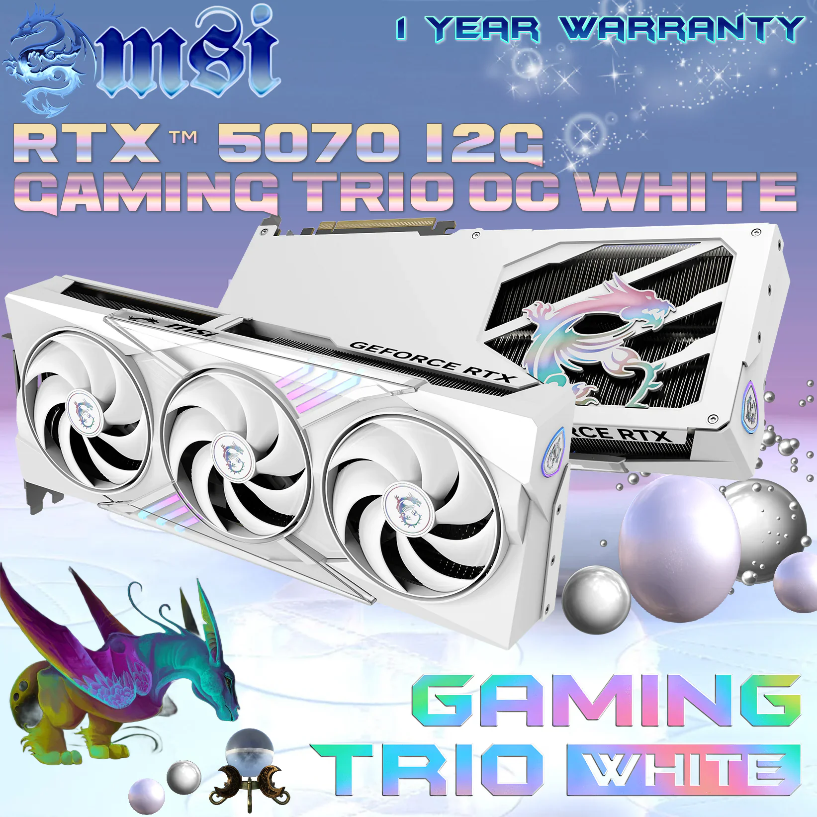 MSI GeForce RTX 5070 12G GAMING TRIO OC WHITE 192-bit Graphics Card 12GB GDDR7 With Blackwell Architecture, DLSS 4, TRI FROZR 4 Cooling, 2625 MHz OC, PCIe 5.0, 16-pin Power | WHITE | 1 YEAR WARRANTY