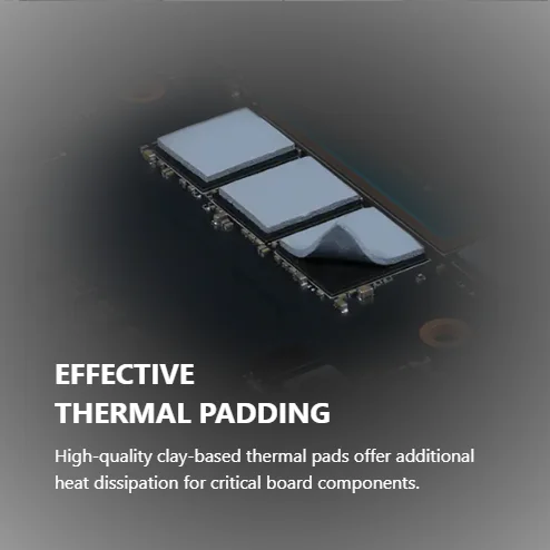 - Nickel-plated Copper Baseplate: Heat from the GPU and memory is swiftly captured by a nickel-plated copper baseplate and transferred.