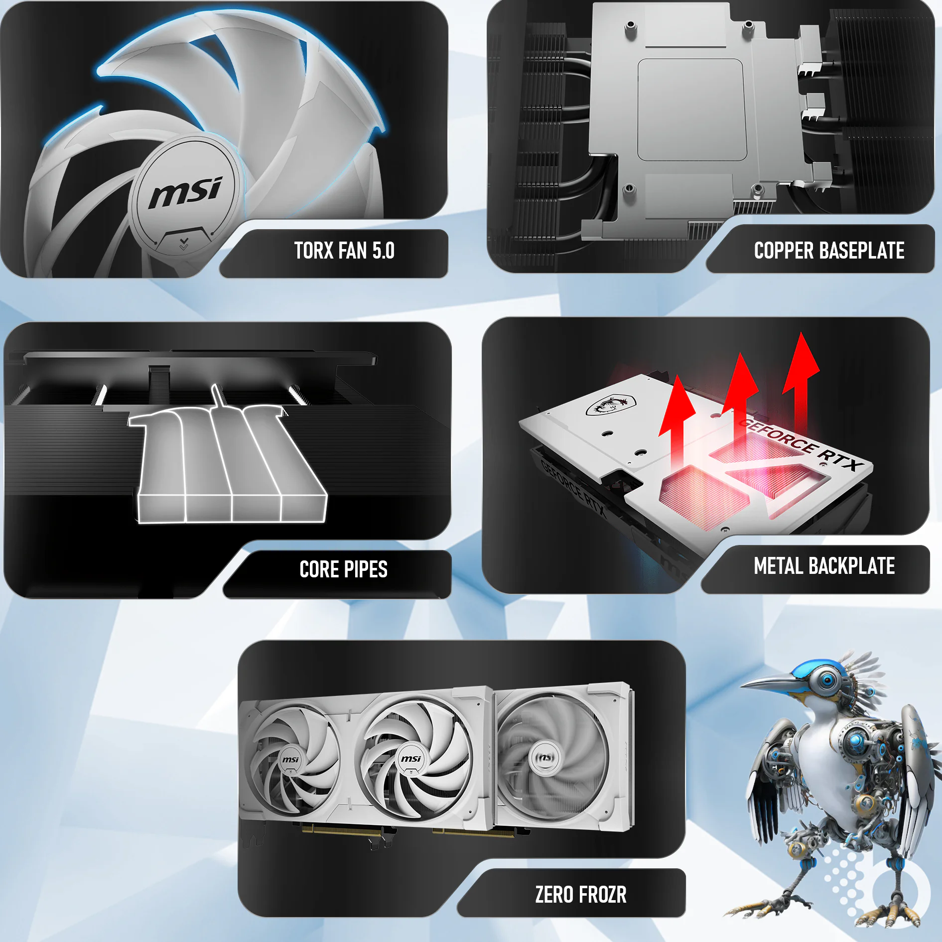 - Metal Backplate: A sturdy metal backplate strengthens the graphics card while the airflow vent design reduces excess heat.