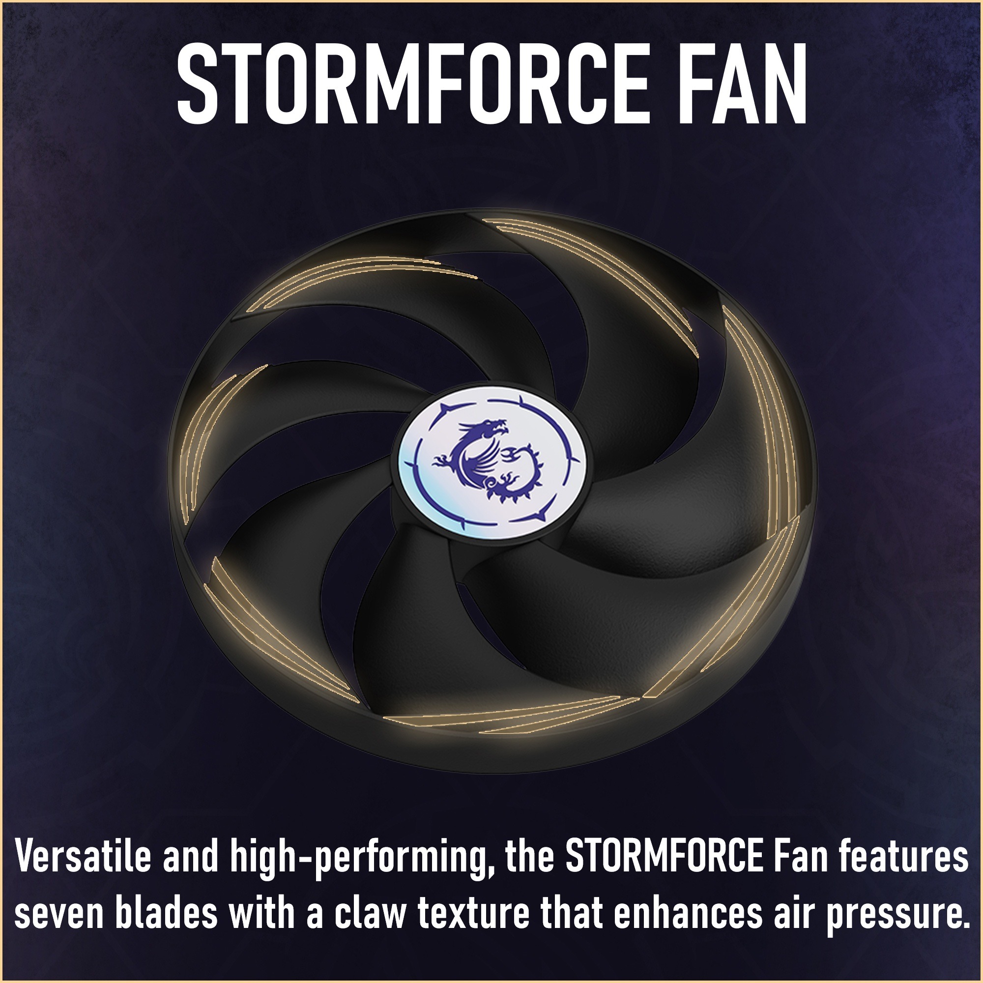 • STORMFORCE Fan Design : Seven fan blades with claw texturing and circular arc geometry optimize airflow with minimal noise.