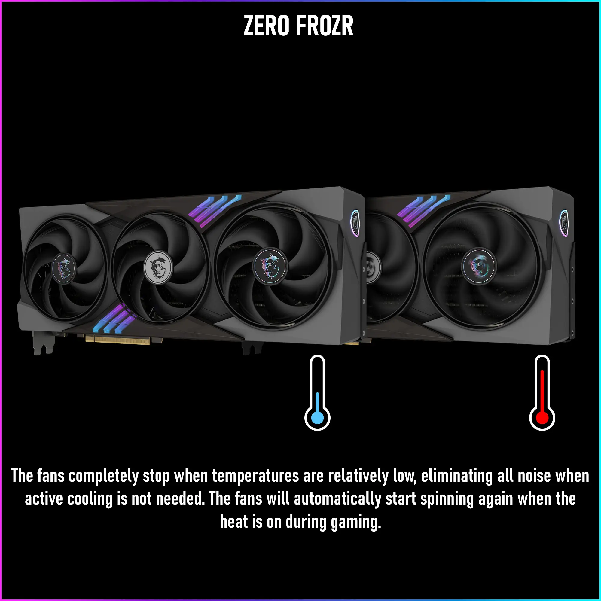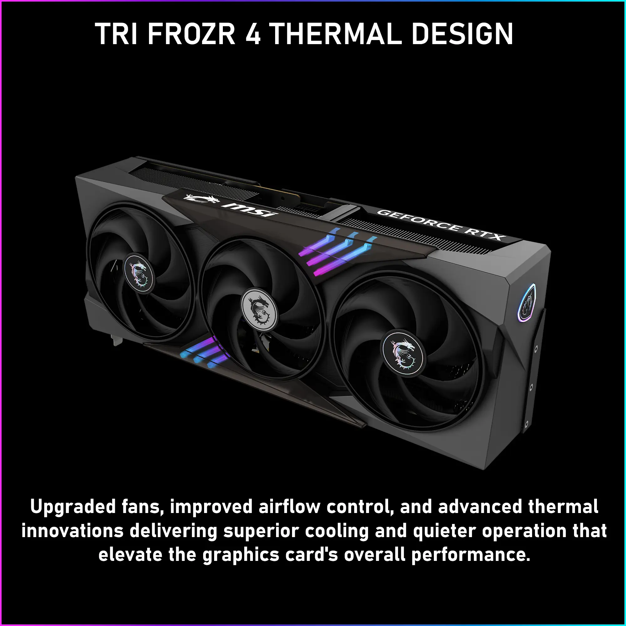 - TRI FROZR 4 Cooling System: Combines STORMFORCE fan, nickel-plated baseplate, Wave Curved 4.0, and Air Antegrade Fin 2.0 to ensure silent and efficient heat dissipation.