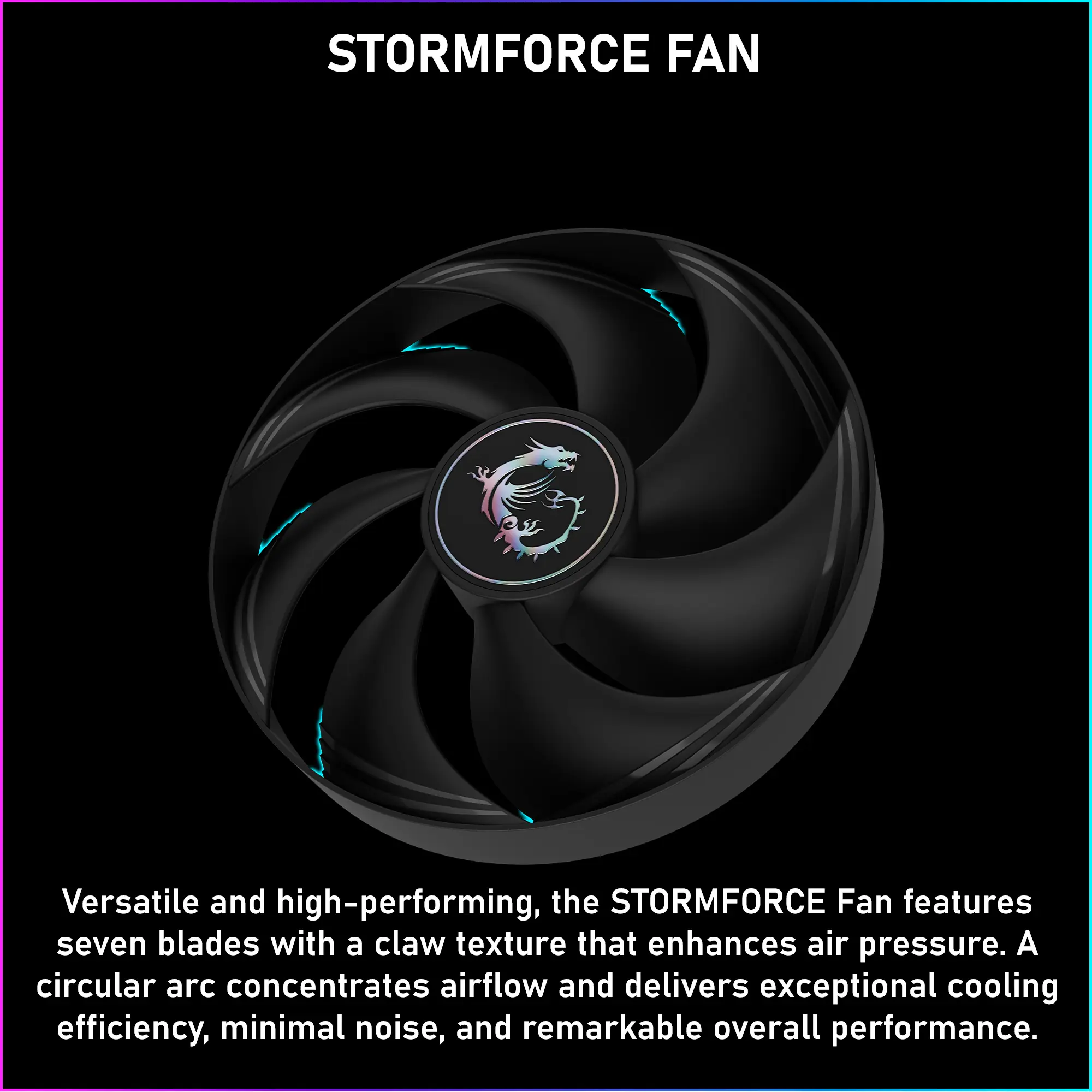 - STORMFORCE Fan Design: Seven claw-textured blades maximize airflow and minimize noise.