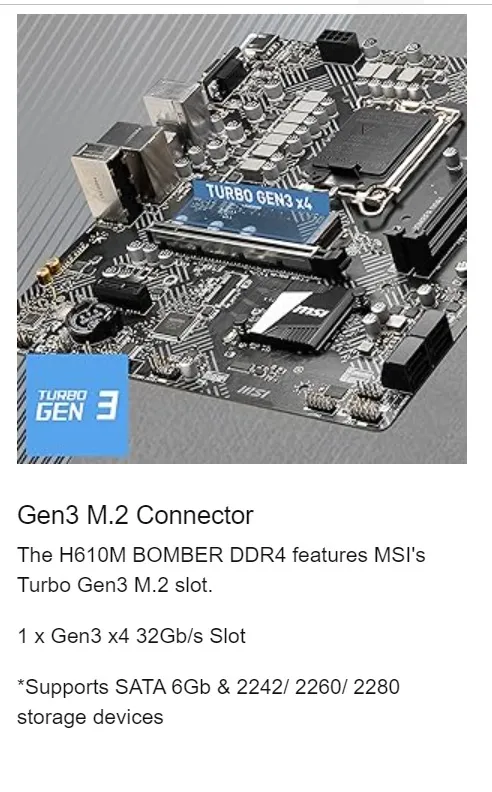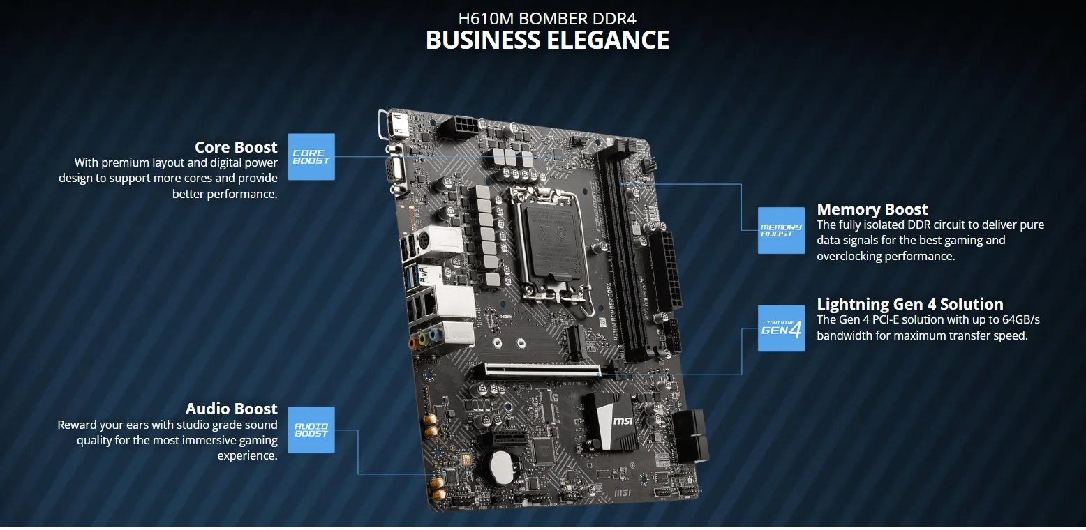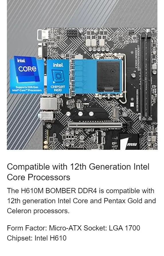 MSI H610M BOMBER DDR4 Motherboard Micro-ATX [Intel H610M Chipset] Supports 12th Generation CPU (LGA1700) 911-7D46-093 – 1 Year Warranty