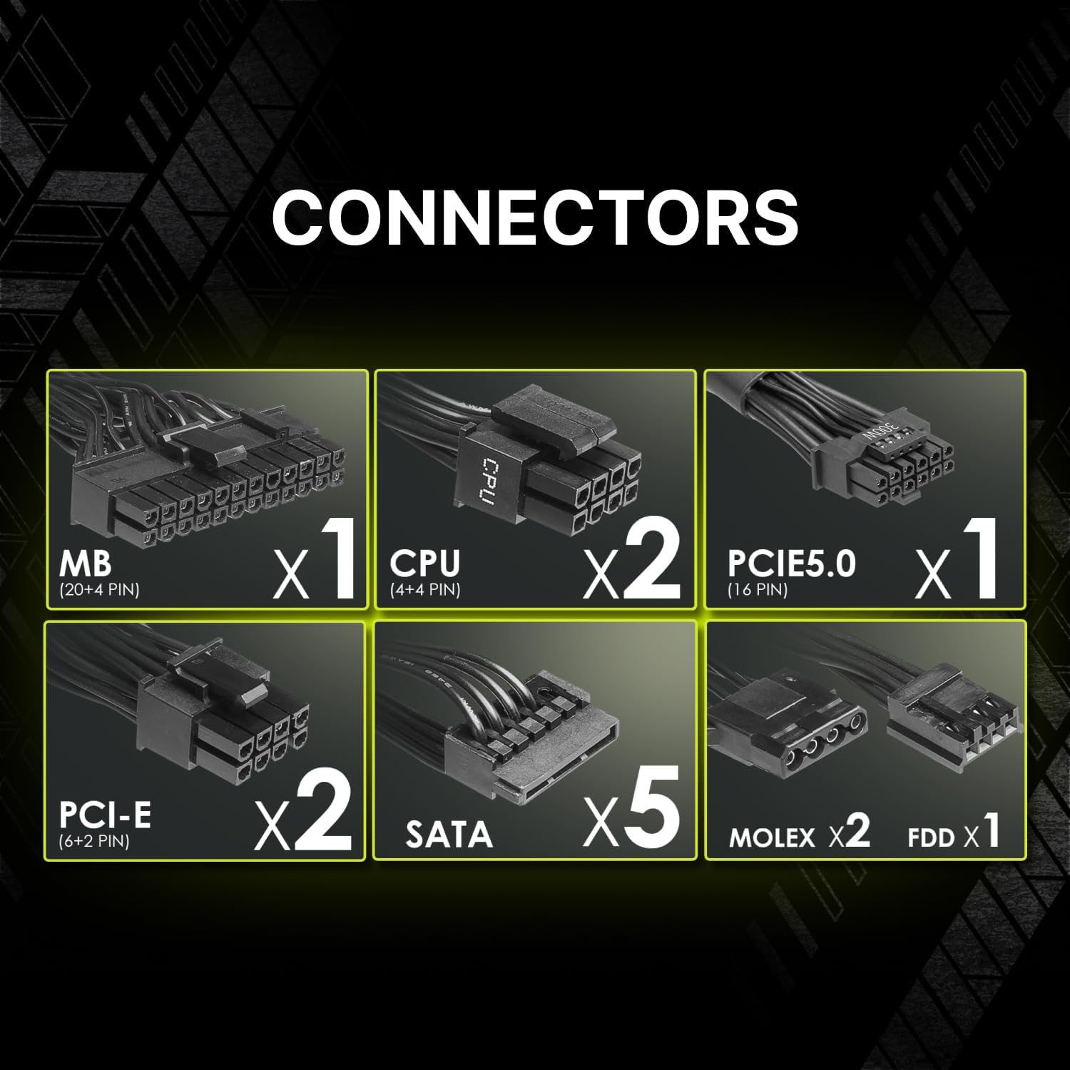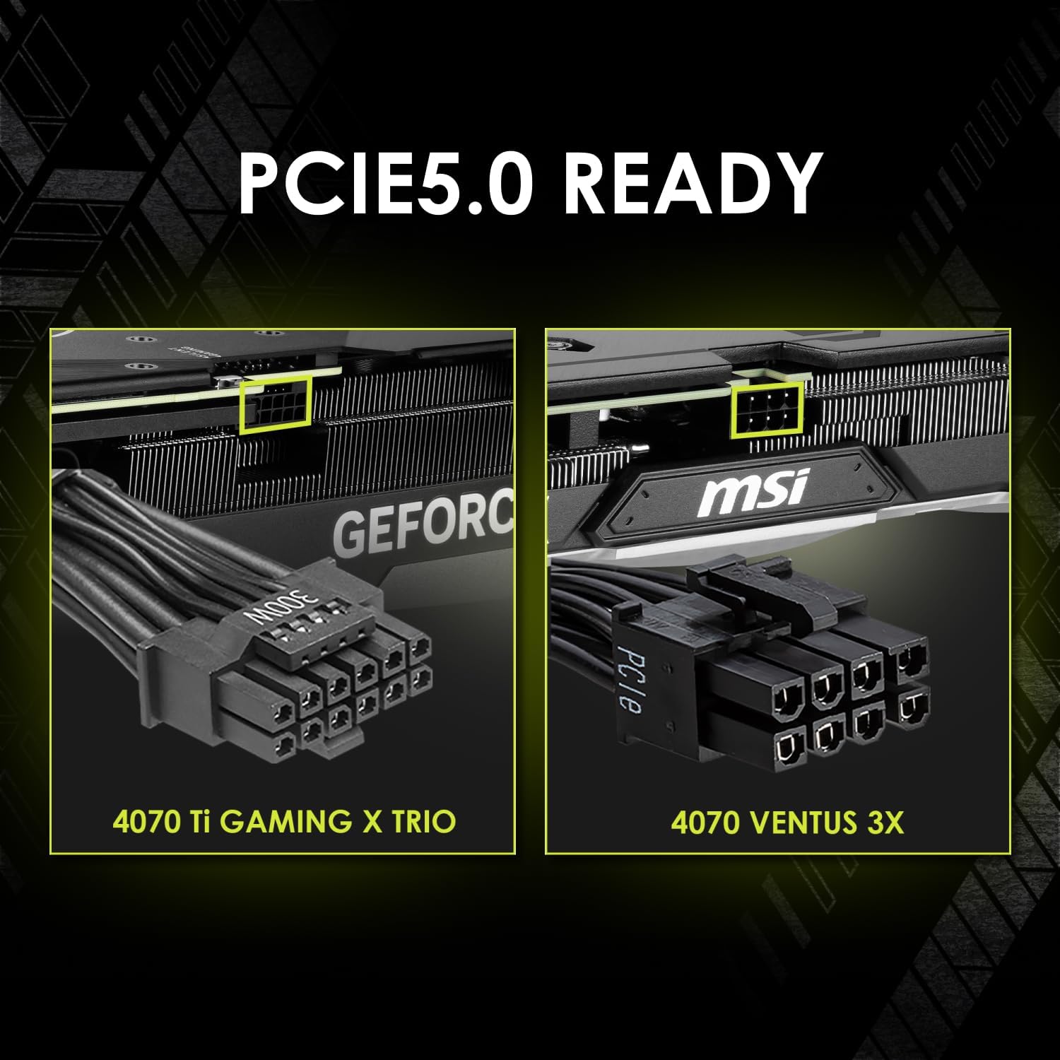 Through the native 16-pin PCIe connector, the PSU can provide up to 300W of power to a PCIe 5.0 GPU, enabling to support the RTX 4070* series graphics cards.
