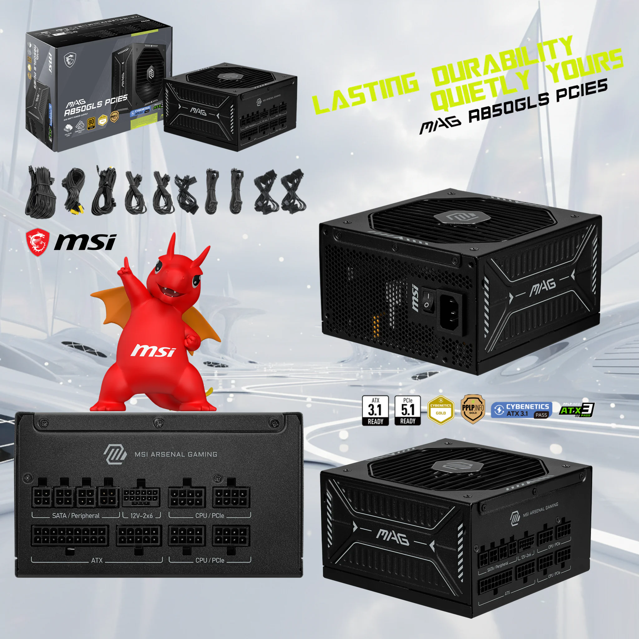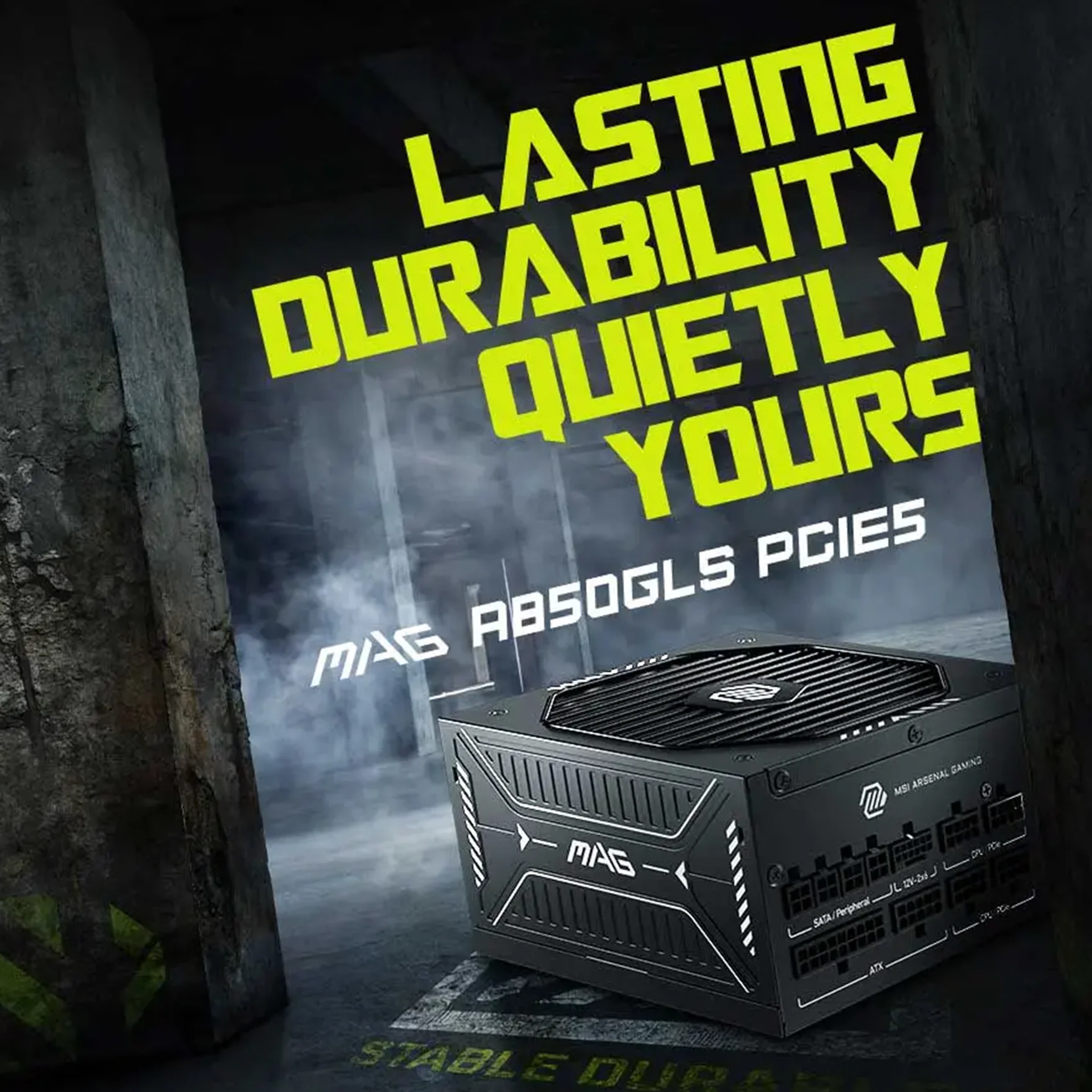 MSI MAG A850GLS PCIe 5.1 ATX 3.1 Power Supply 850W | 80 Plus Gold | Native 12V-2×6 GPU Connector | Modular Cables | 135mm FDB Fan | Ultra Quiet & Durable