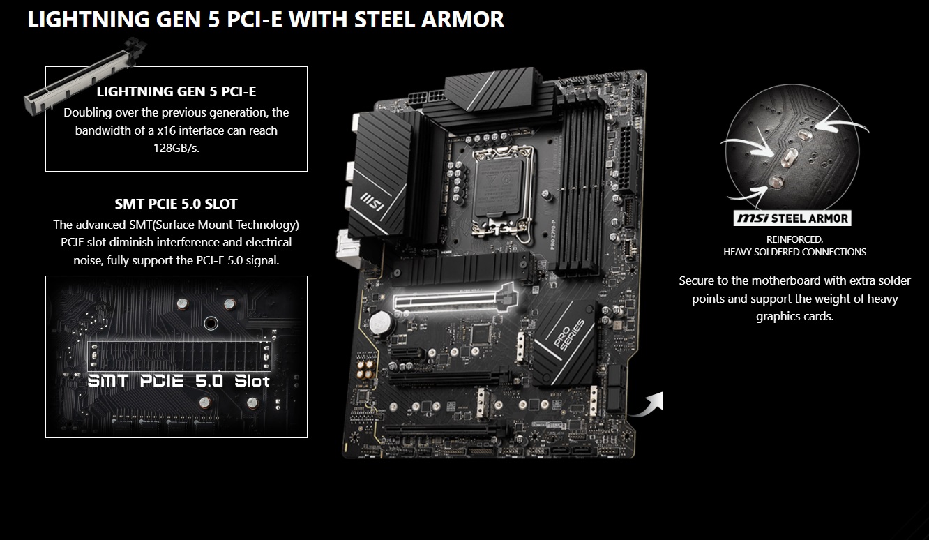 - Lightning Fast Game experience: PCIe 5.0 slot, Lightning Gen 4 x4 M.2, USB 3.2 Gen 2×2