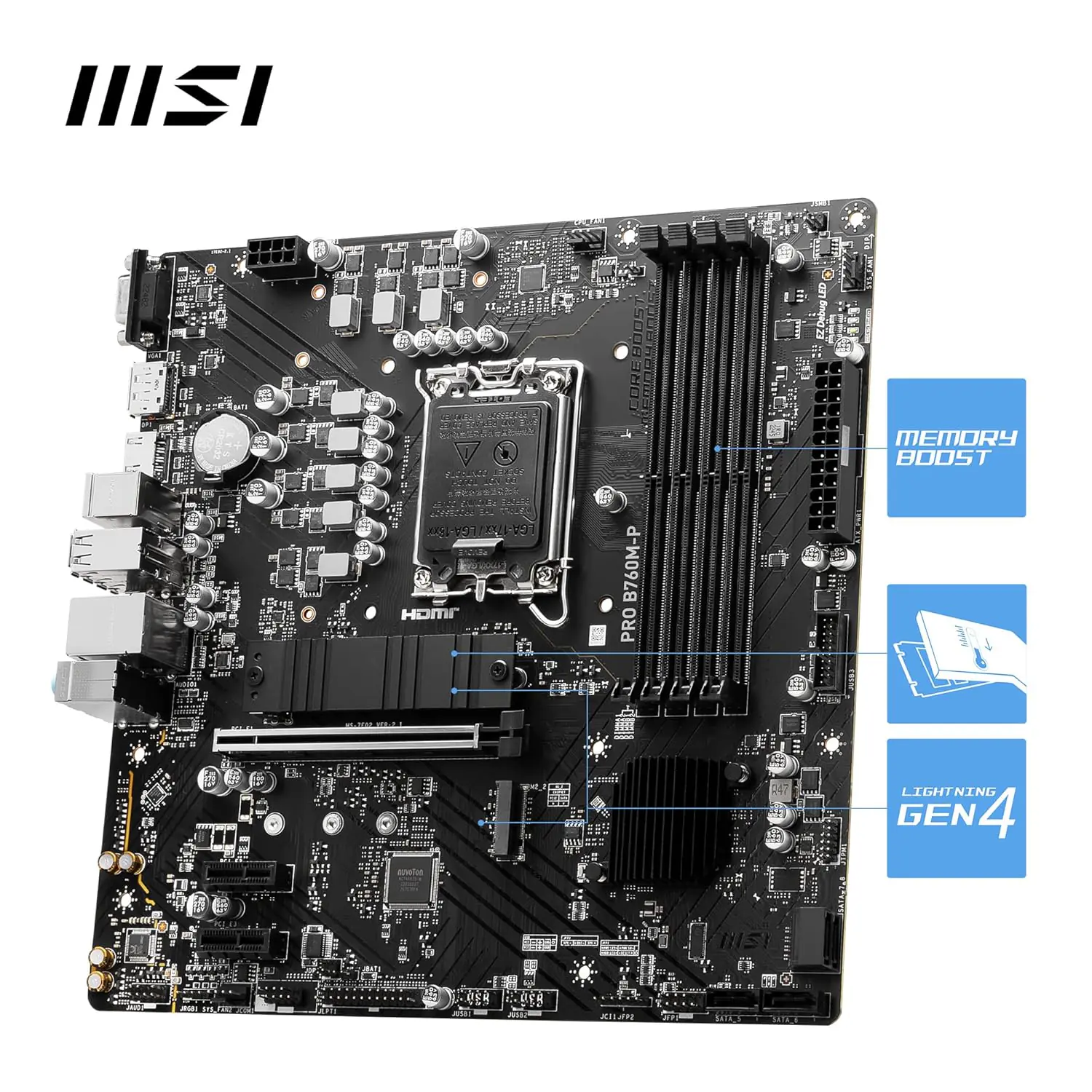 - 12TH & 13TH GEN CORE – The PRO B760M-P is a compact Micro-ATX motherboard outfitted with the latest Intel B760 chipset (LGA 1700, 12th & 13th Gen Core); The VRM features MSI Core Boost technology for improved stability & performance