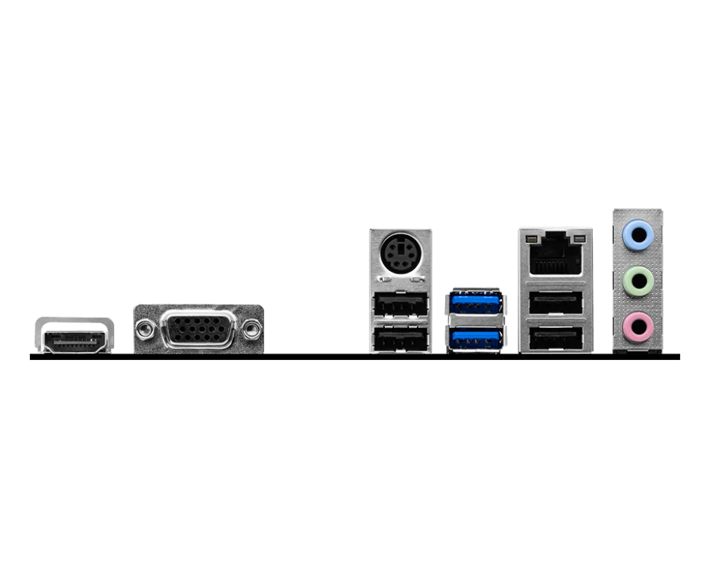 Back Panel Ports HDMI, VGA, Keyboard/Mouse, USB 5Gbps Type-A, USB 2.0, LAN, Audio Connectors