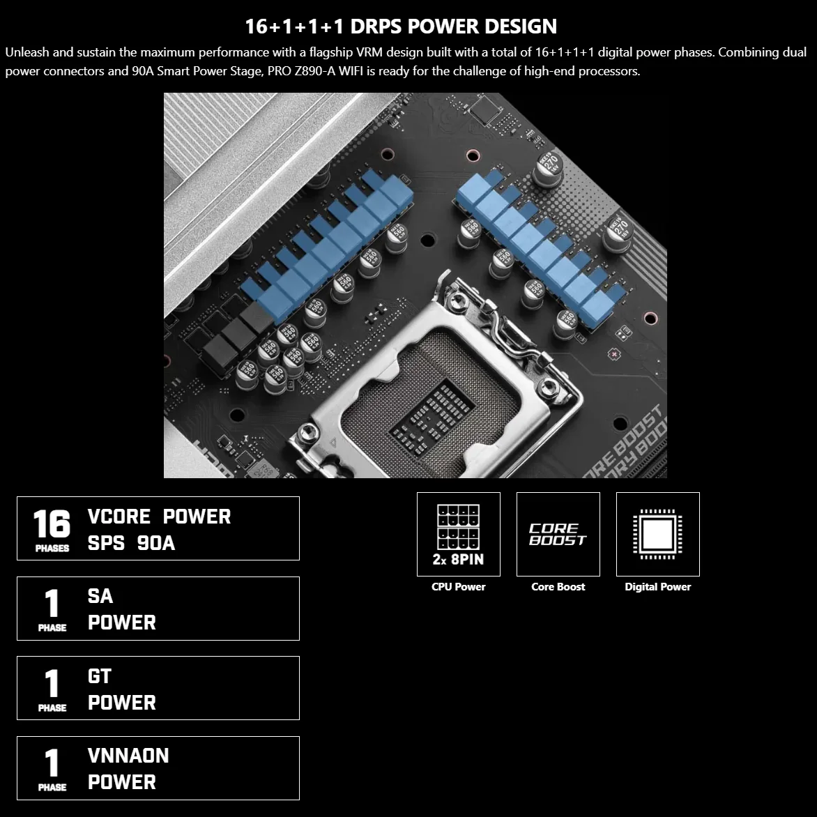 - 16+1+1+1 Power Phases @ 90A SPS – Think of it as a power plant strapped to your processor, delivering stable juice for extreme multitasking and overclocking.