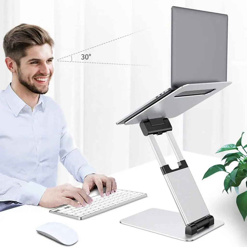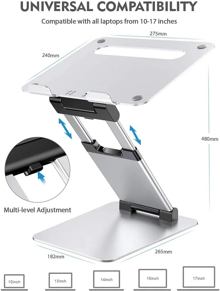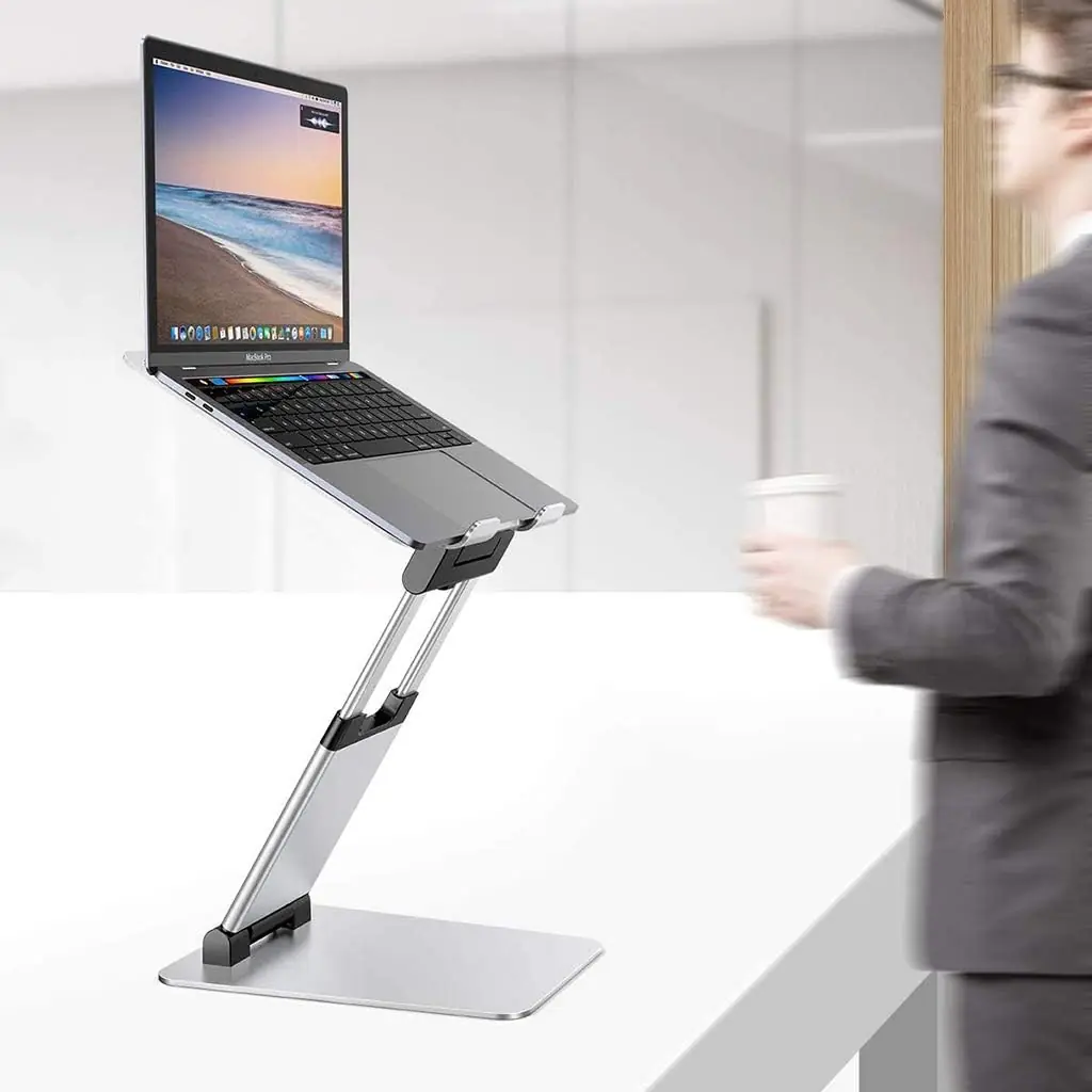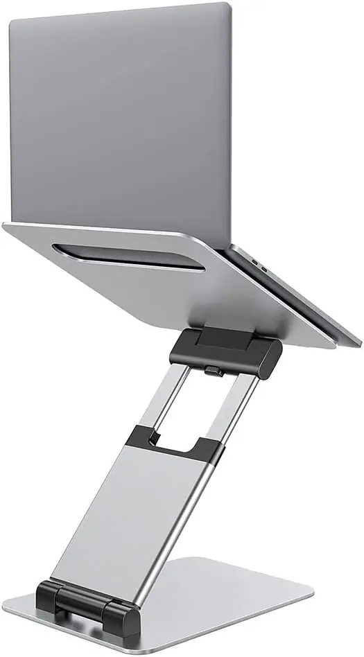 N19-2 Aluminum Sit-to-Stand Adjustable Laptop Stand – Ergonomic, Heavy-Duty Riser for 10″-17″ Laptops with 22lbs Load Capacity
