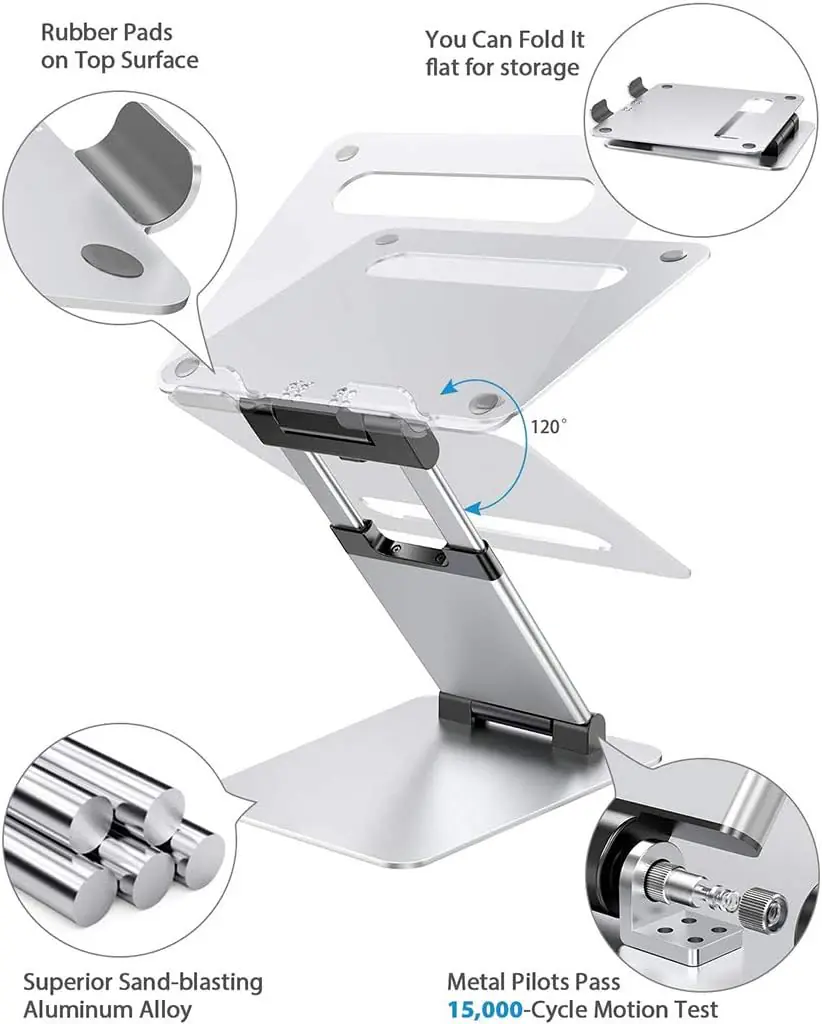 Crafted from high-grade aluminum; supports up to 10kg (22lbs) with anti-slip pads and front edge stoppers for added device security. - Ergonomic & Space-Saving