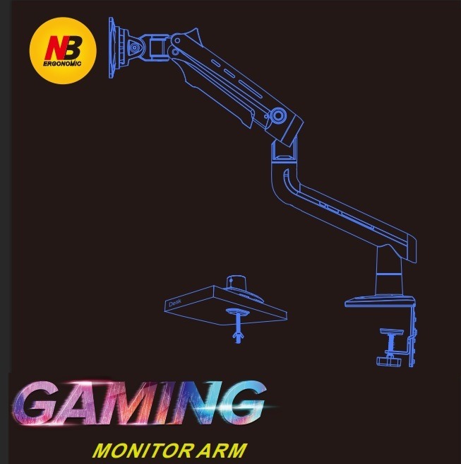 NB A5 Gaming Monitor Arm For 27″–50″ For  Flat – Ultrawide – Curved Displays ; 18KG Max Load ; 360° Rotation ; Ergonomic Mechanical Spring Arm ; C-Clamp & Grommet Mount With Cable Management