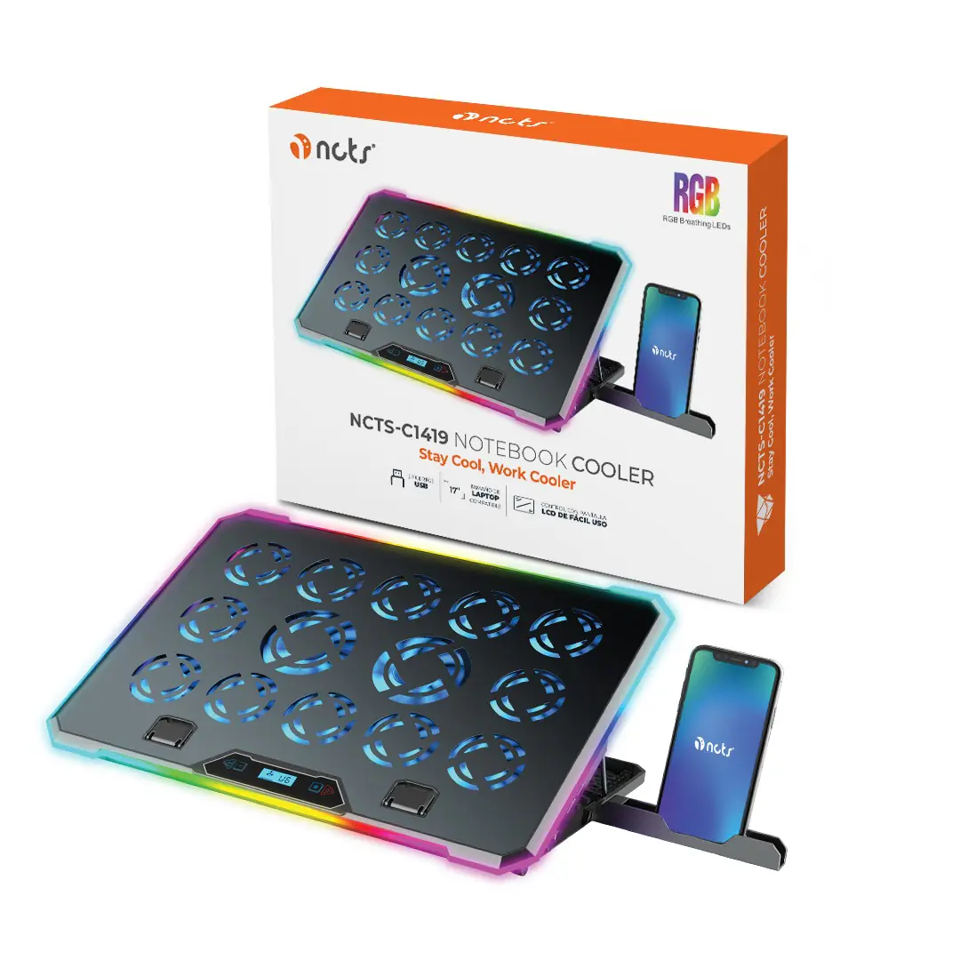 Keep your laptop cool and stylish with the NCTS – C1419 Notebook Cooler. Designed for laptops up to 17 inches, this high-performance cooler offers superior cooling, enhanced ergonomics, and stunning RGB breathing LEDs for a sleek, customizable look. Ideal for gaming laptops, workstations, or any high-performance notebook, the C1419 ensures that your device stays cool even during the most intensive tasks.
