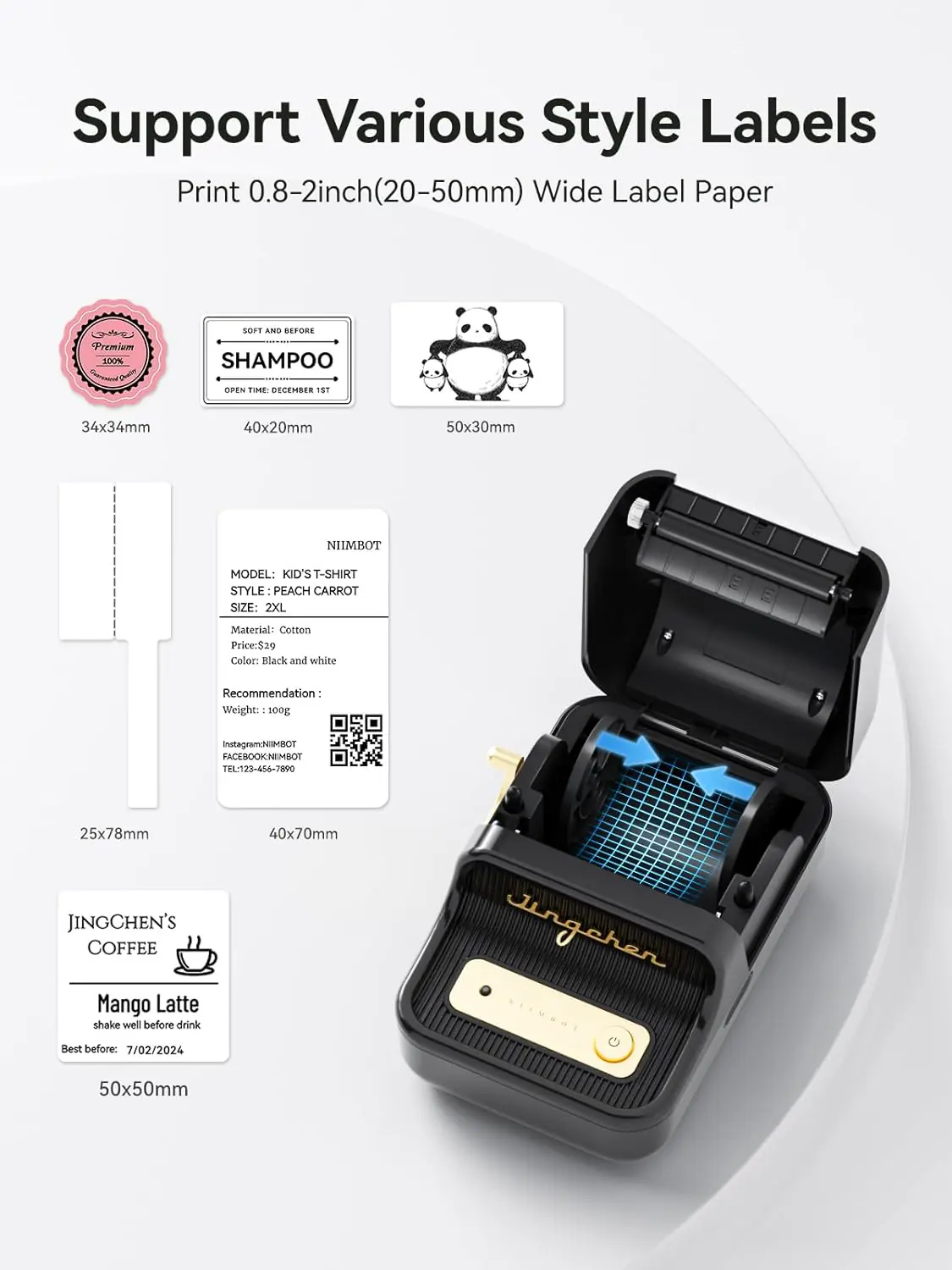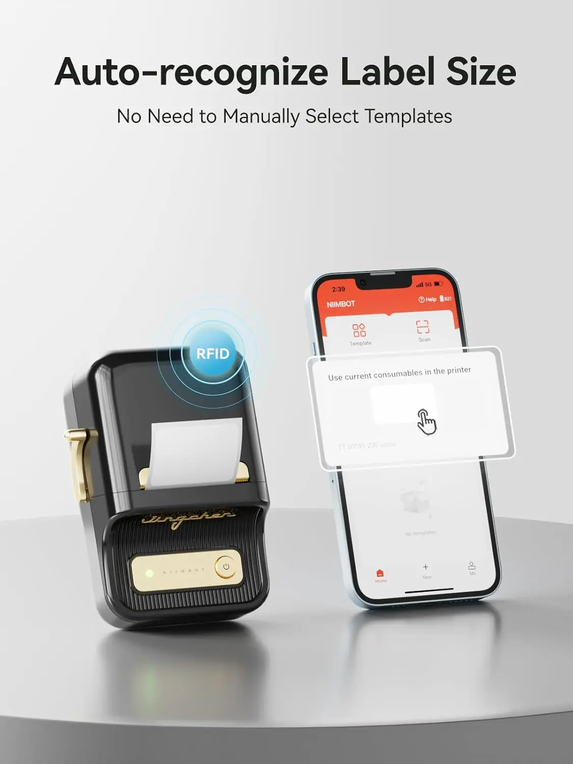 - NIIMBOT App Integration – Enjoy 30+ fonts, 100+ borders, 1500+ symbols, image recognition, batch printing, and automatic sticker-size detection.