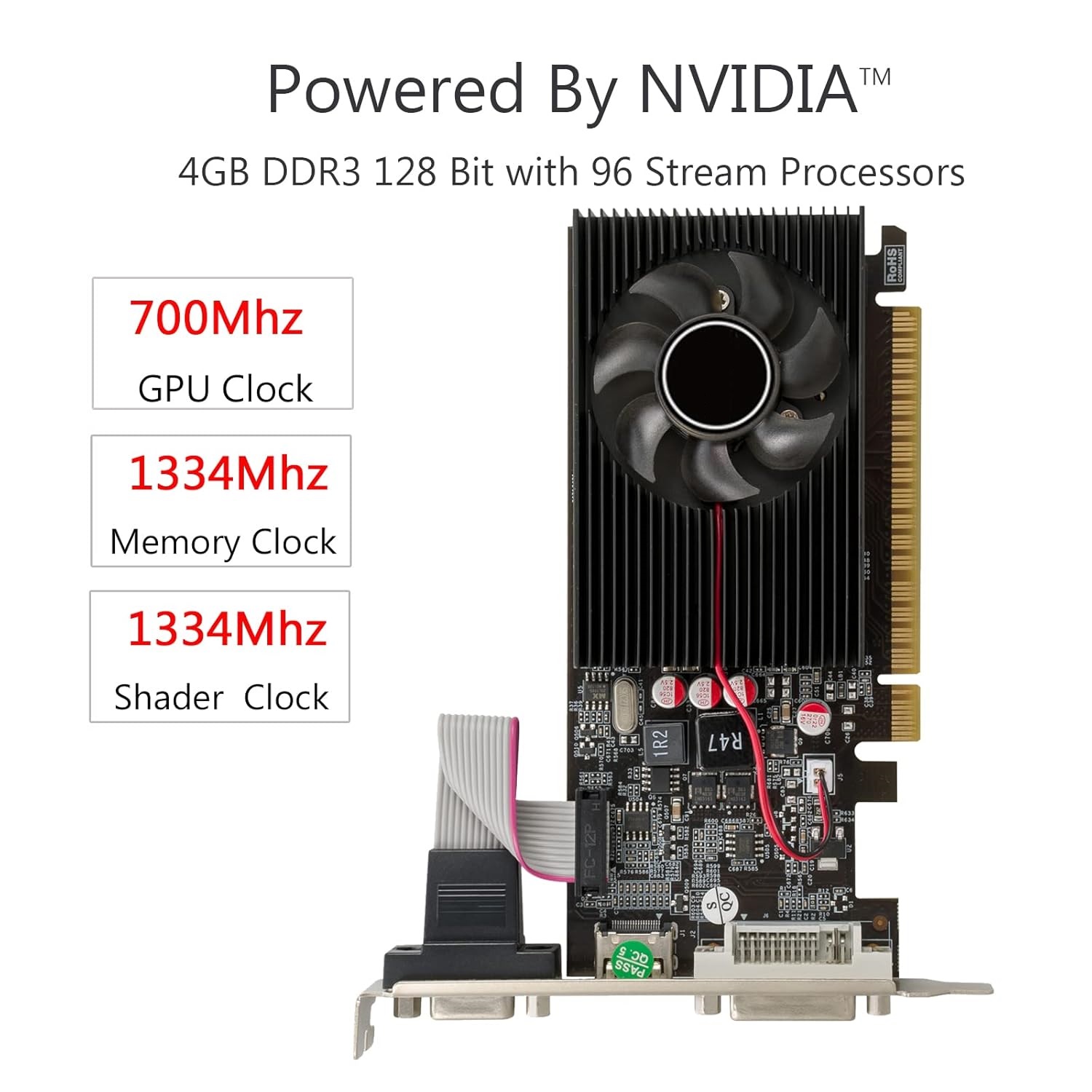 - 【 4G DDR3 Memory 】GeForce GT 730 graphics card is with 4G DDR3 high-speed video memory graphics card ensures up to 1334 Mhz speed, which can speed up your PC multimedia experience very well and enjoy ultra-fast web browsing and incredible photo and video editing experience.