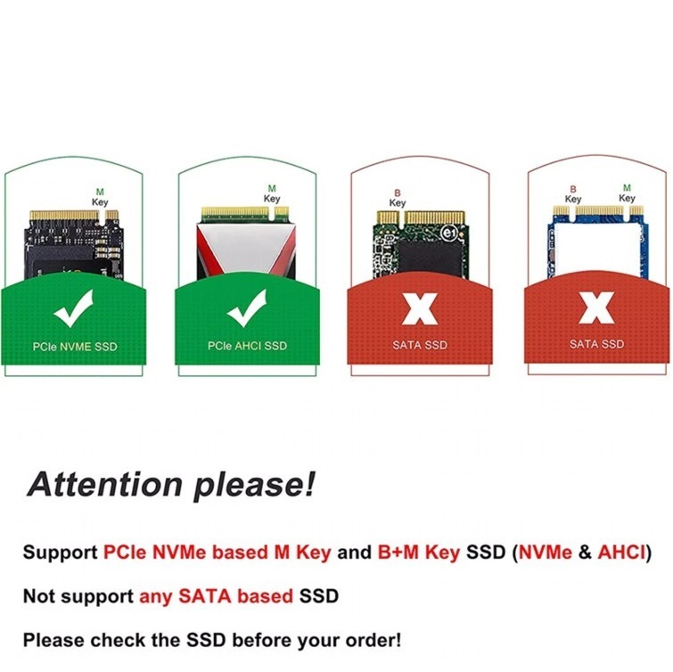 - [Applicable SSD Hard Drive] – The M.2 PCIe adapter ONLY supports PCI-e NVMe based M Key and B+M Key SSD (NVMe & AHCI), NOT supports any SATA based SSD. Fit for PCIe x4/ x8/ x16 slot