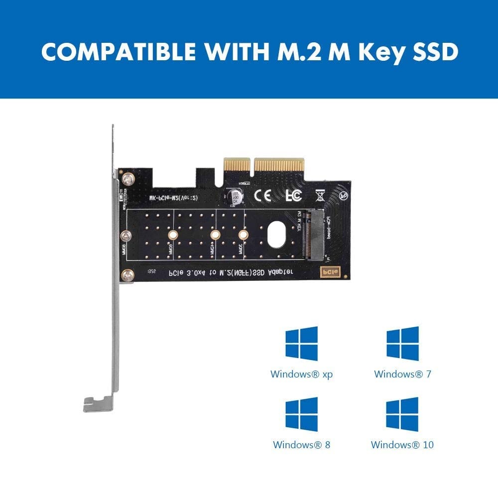 - [Support System] – The PCI express M.2 adapter supports Windows 7 / 8 / 10, no driver required. Suitable for 2230 2242 2260 2280 solid state drive