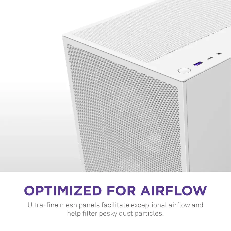 - Ultra-Fine Mesh Panels: Mesh on the top, front, and PSU shroud maximizes airflow while filtering dust to keep components clean and cool.