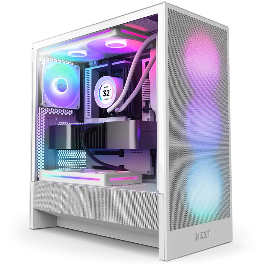 NZXT H5 Flow RGB 2024 Edition White ATX Mid-Tower Case, 1x F360 RGB Core & 1x F120Q Fan, Supports 360mm Radiator, Mesh Panels, Compatible With ATX/mATX/ITX | CC-H52FW-R1